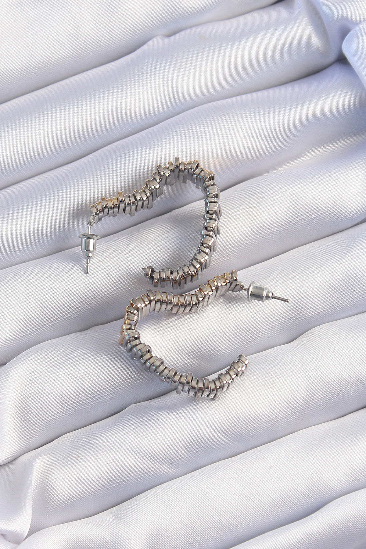 Pirinç Gold Gümüş Renkli Tırtıklı Kalp Küpe e_BKP9227