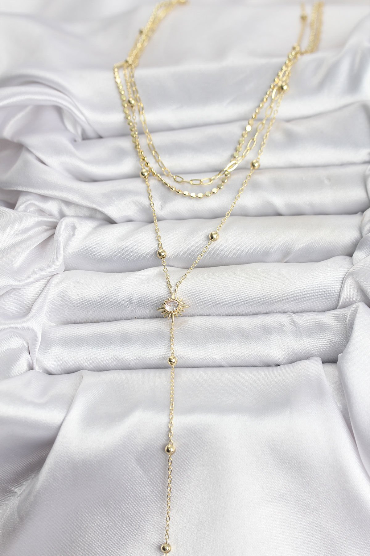 Pirinç Gold Renk Güneş Model Detaylı 3'lü Kombin Y Kadın Kolye e_BKO10692