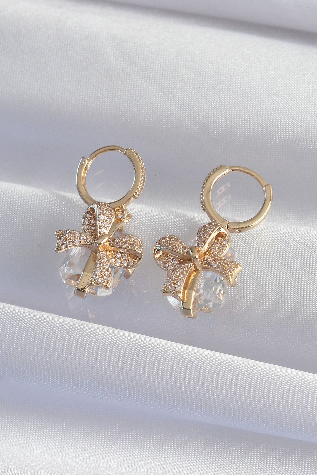 Pirinç Gold Renk İri Zirkon Taşlı Fiyonk Model Halka Küpe e_BKP9313
