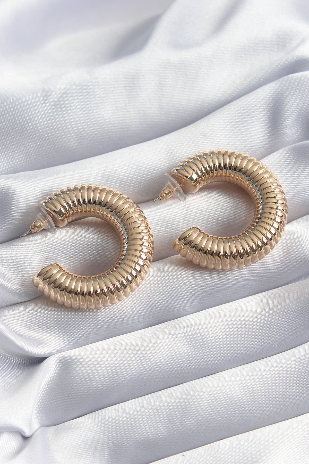 Pirinç Gold Renk İşleme Detay Halka Model Kadın Küpe e_BKP8244