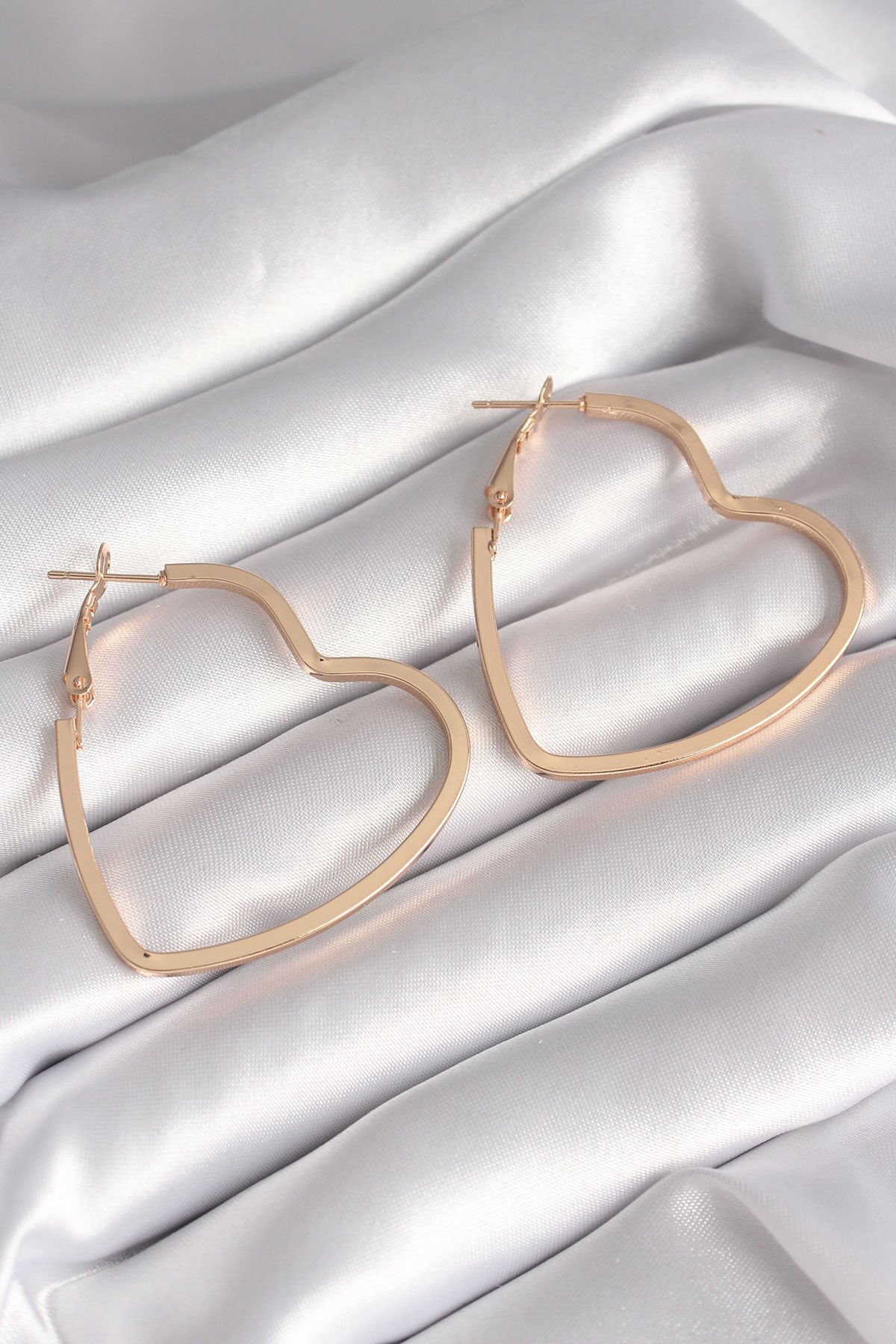 Pirinç Gold Renk Kalp Model Kadın Küpe