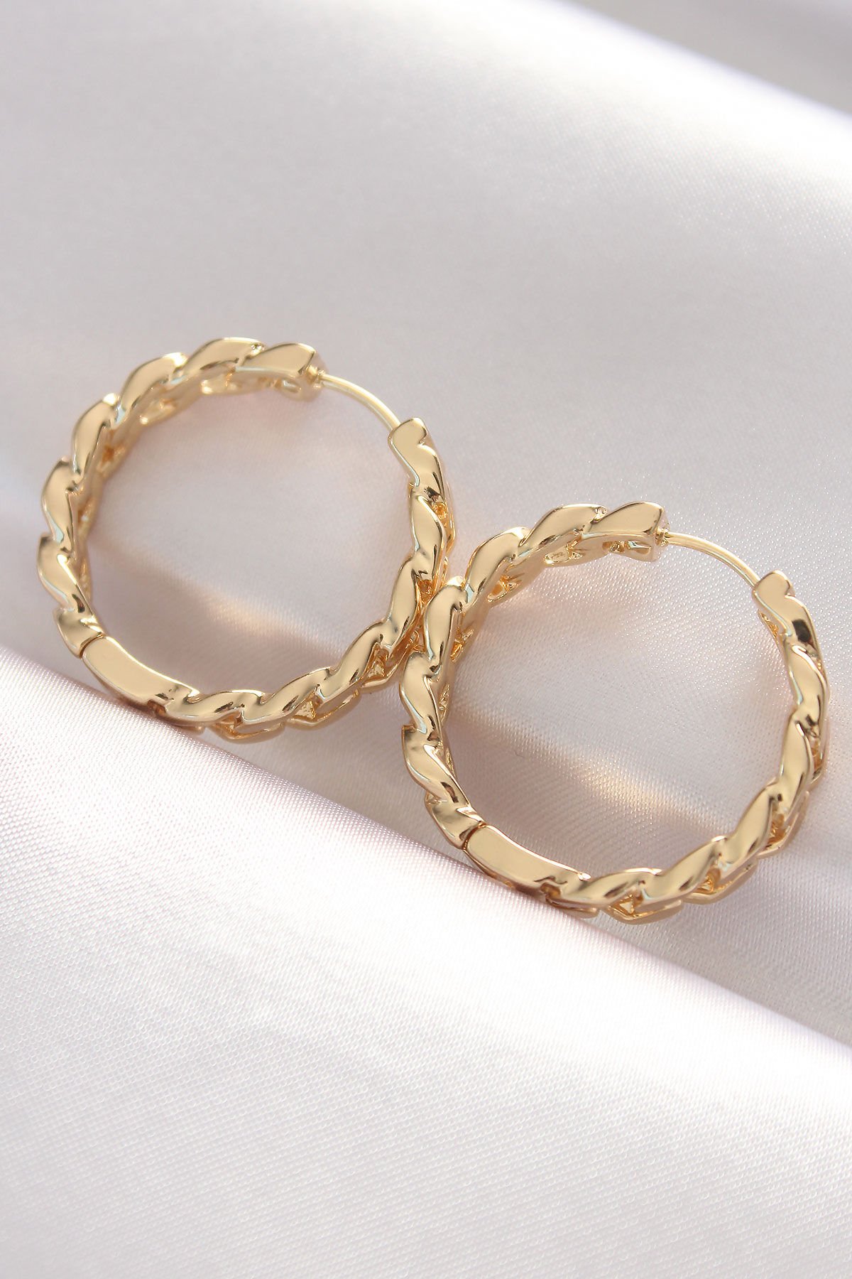 Pirinç Gold Renk Zincir Model Halka Küpe