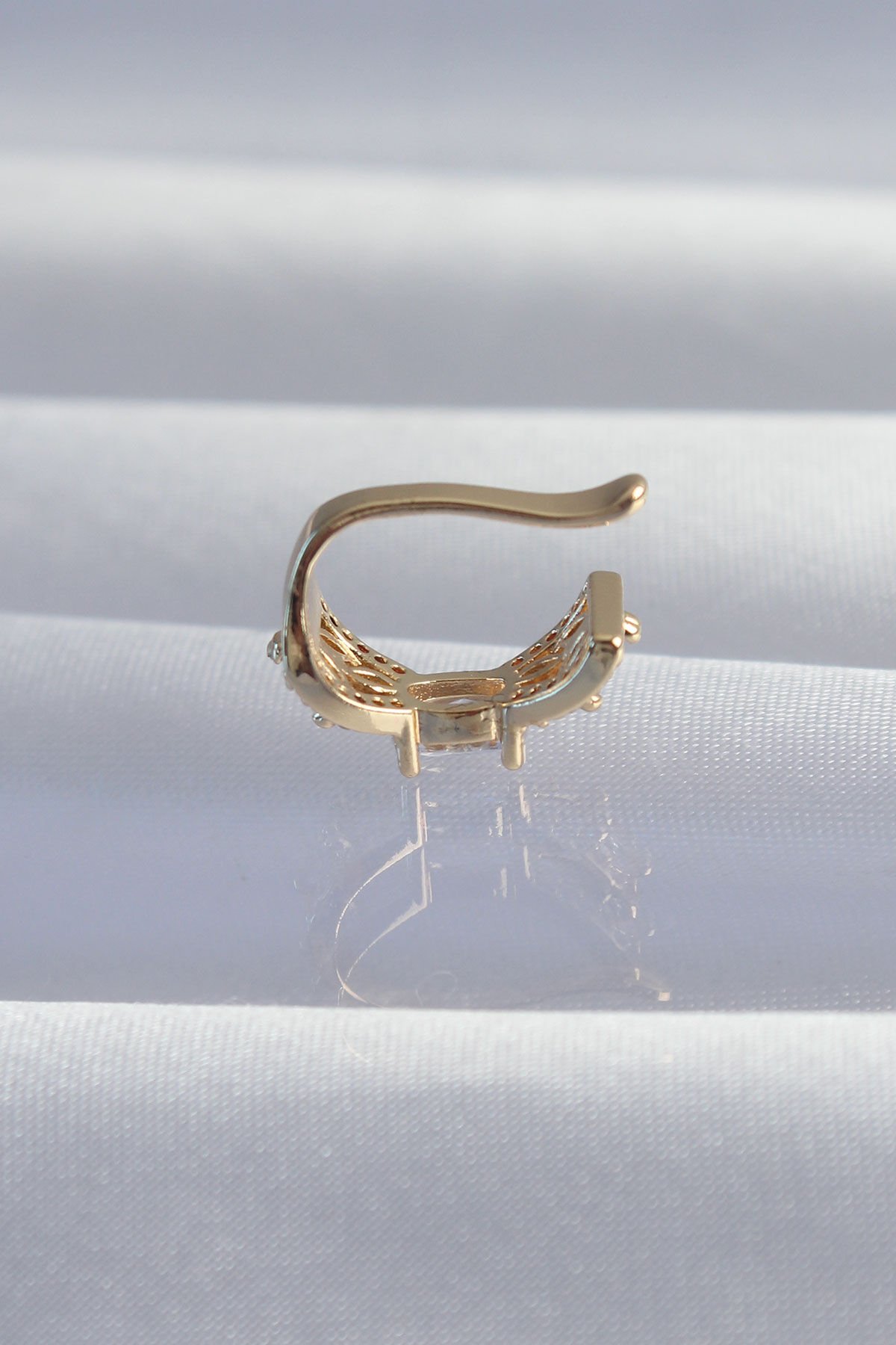 Pirinç Gold Renk Zirkon Taş Kaplama Earcuff Küpe