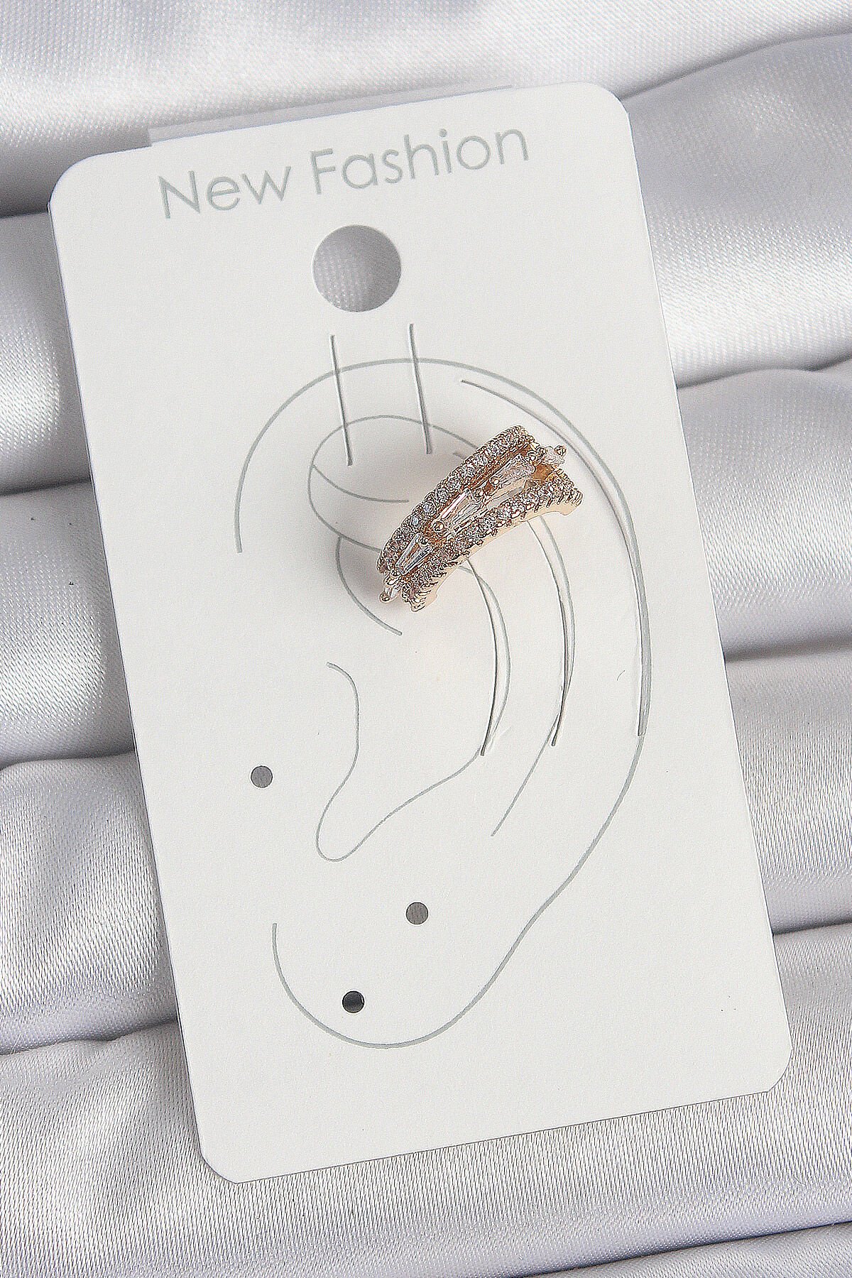 Pirinç Gold Renk Zirkon Taşlı 3'Lü Sıralı Model Kadın Kıkırdak Küpe