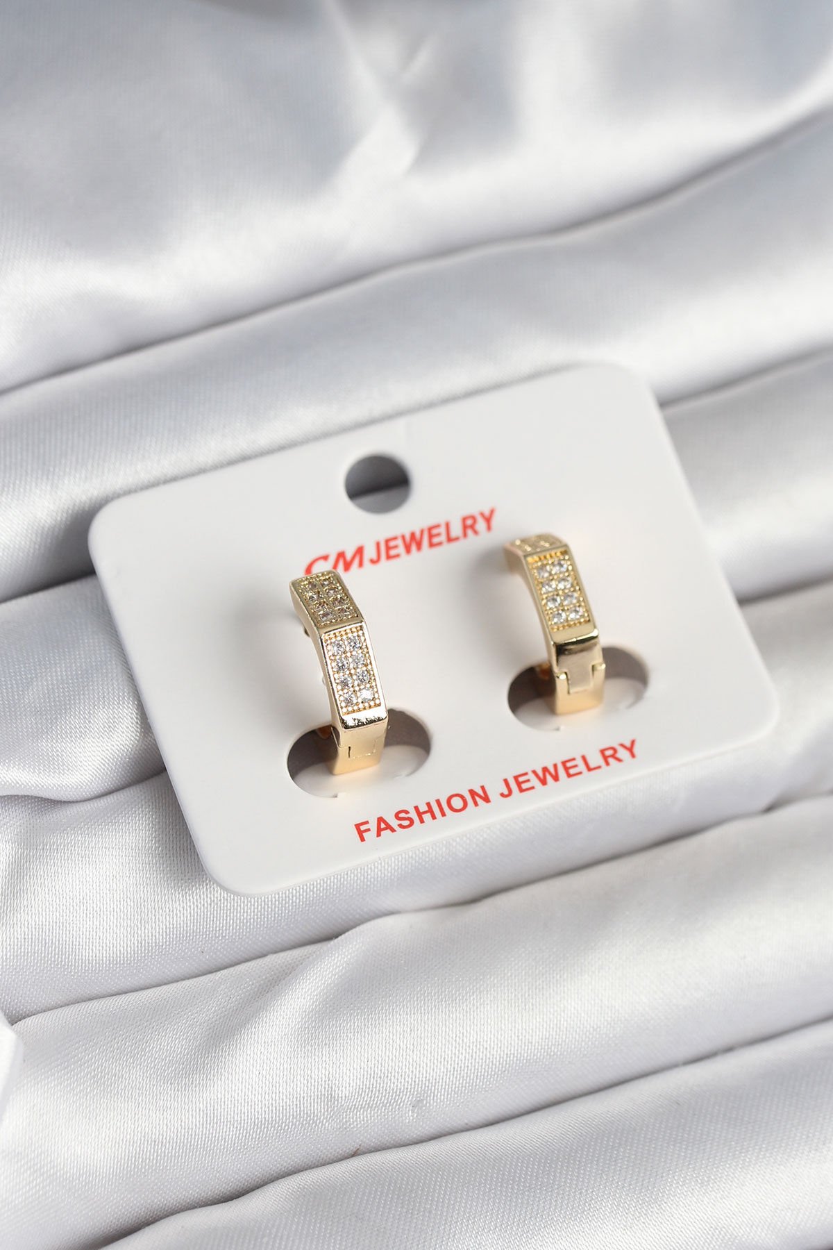 Pirinç Gold Renk Zirkon Taşlı Altıgen Kadın Küpe