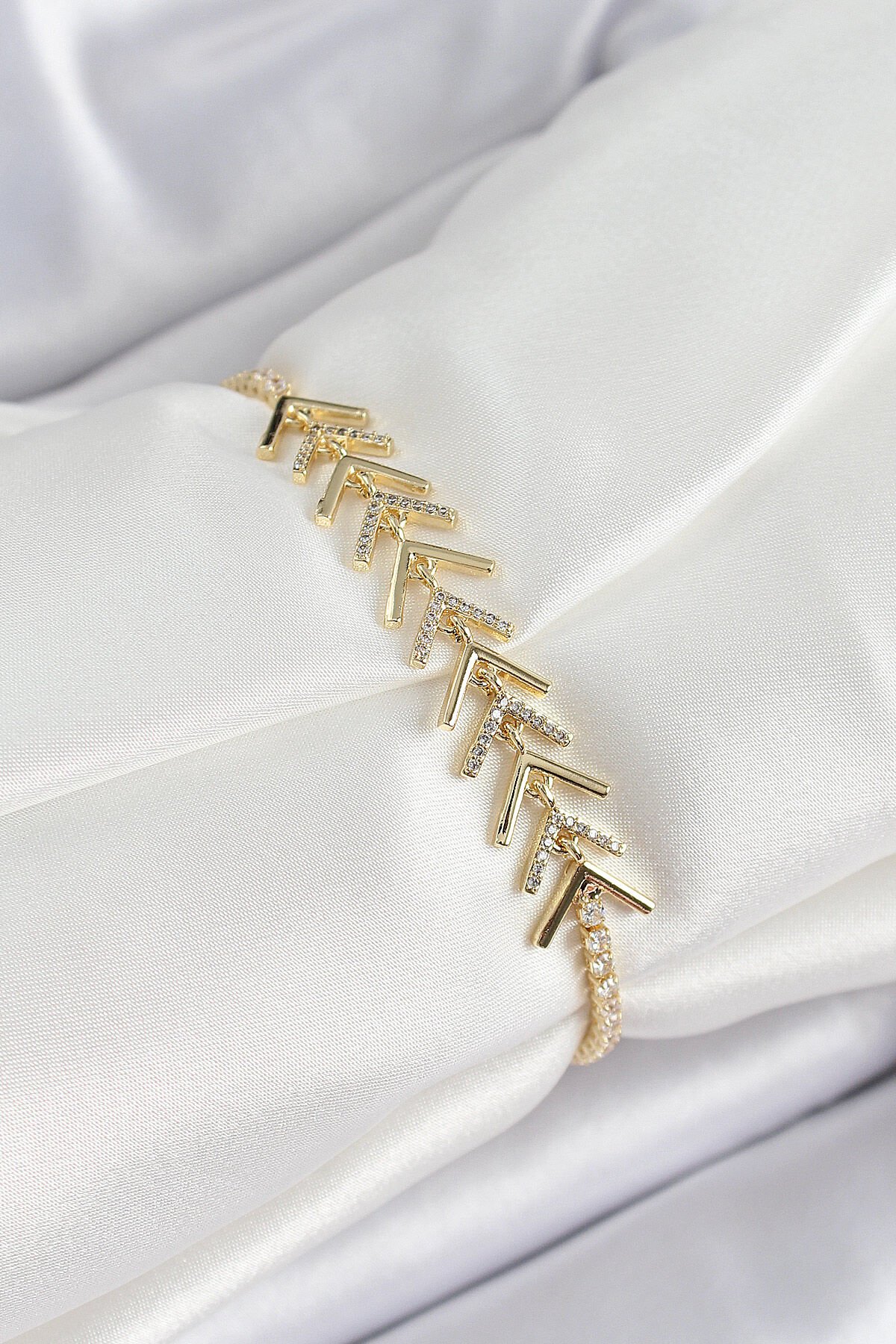 Pirinç Gold Renk Zirkon Taşlı Balık Sırtı Kadın Bileklik e_BB7068