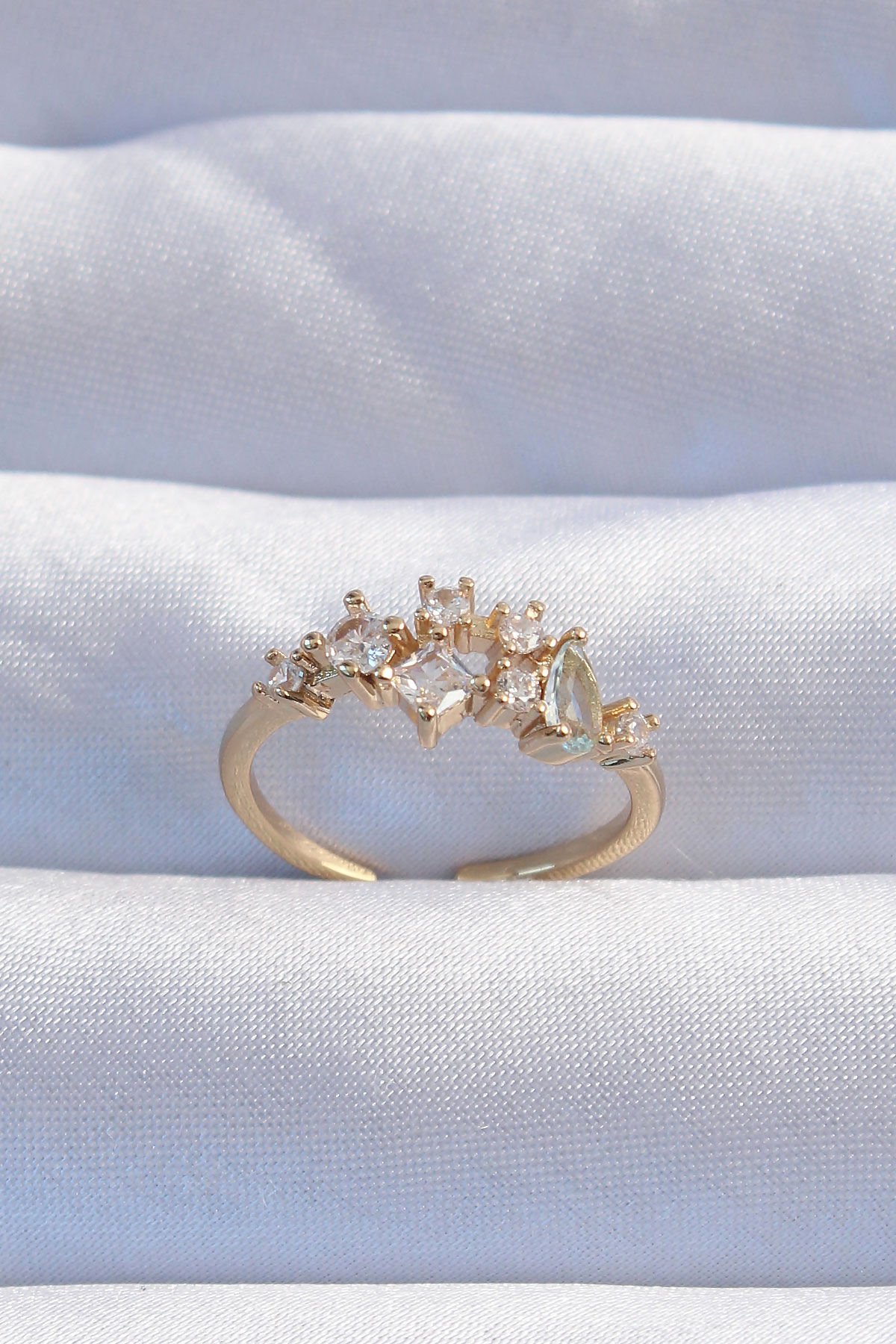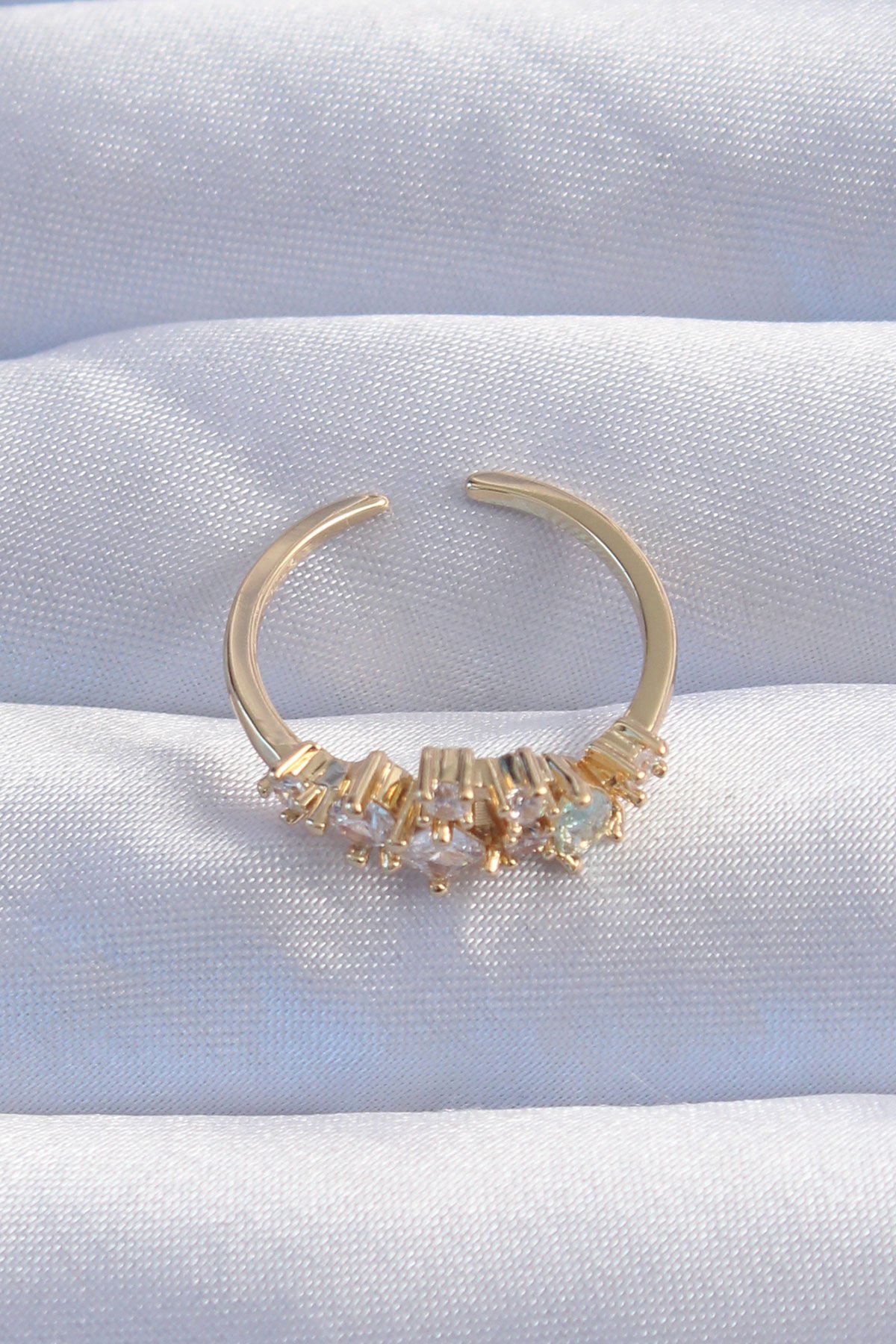 Pirinç Gold Renk Zirkon Taşlı Damla Detay Ayarlanabilir Yüzük