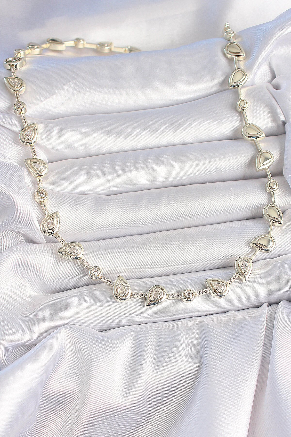 Pirinç Gold Renk Zirkon Taşlı Damla Model VIP Seri Exclusive Kadın Kolye