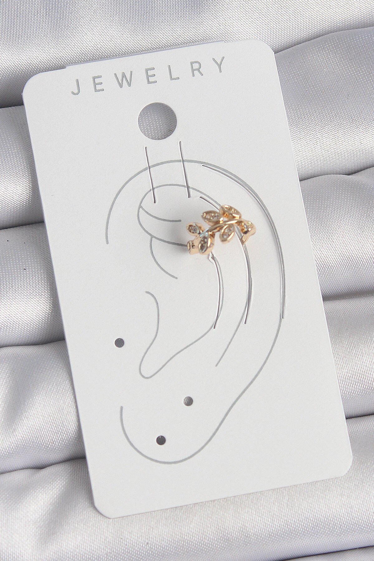Pirinç Gold Renk Zirkon Taşlı Yaprak Model Kadın Kıkırdak Küpe