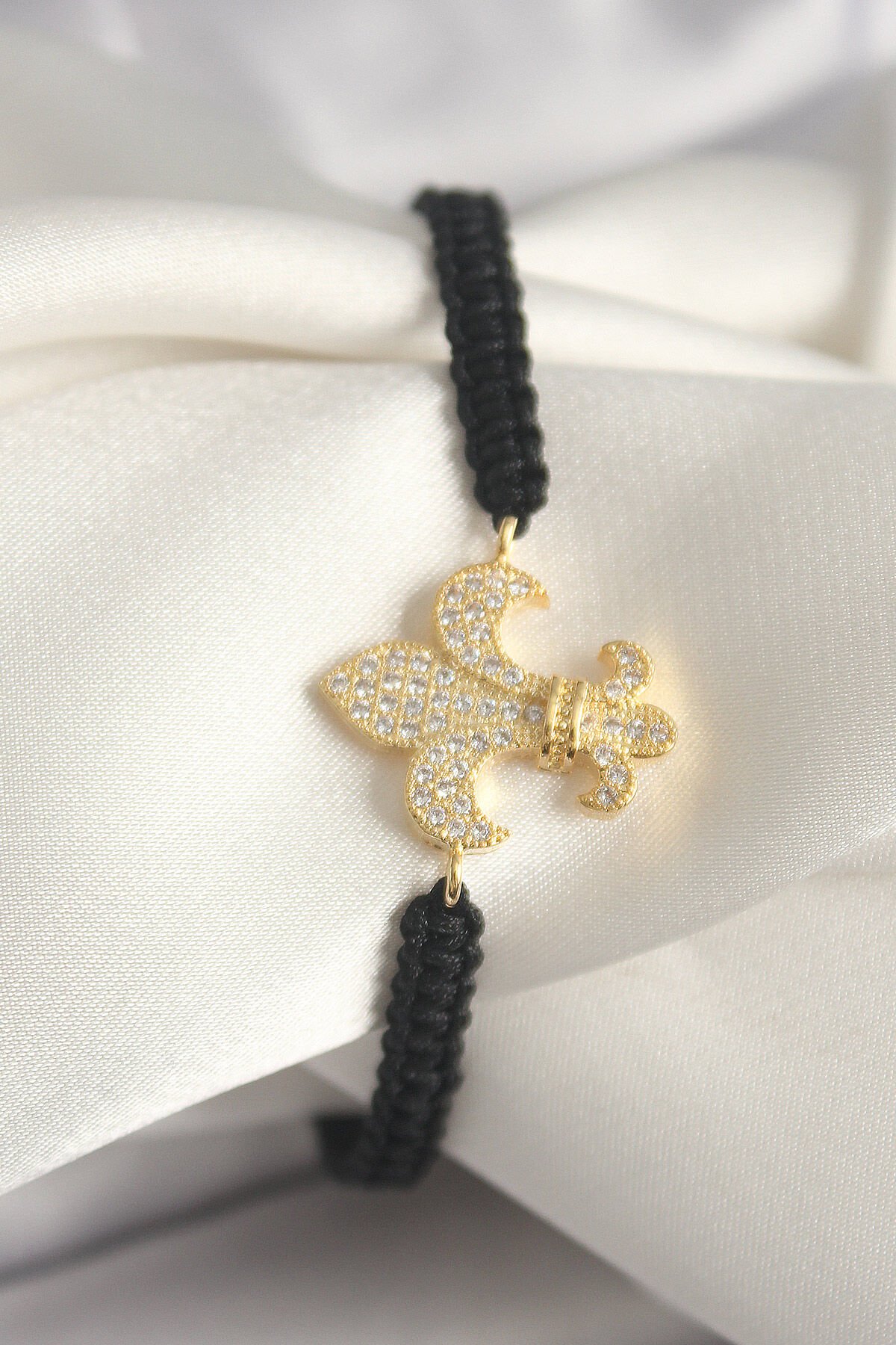 Pirinç Gold Renk Zirkon Taşlı Zambak Figür Asansörlü Makrome Model Kadın Bileklik