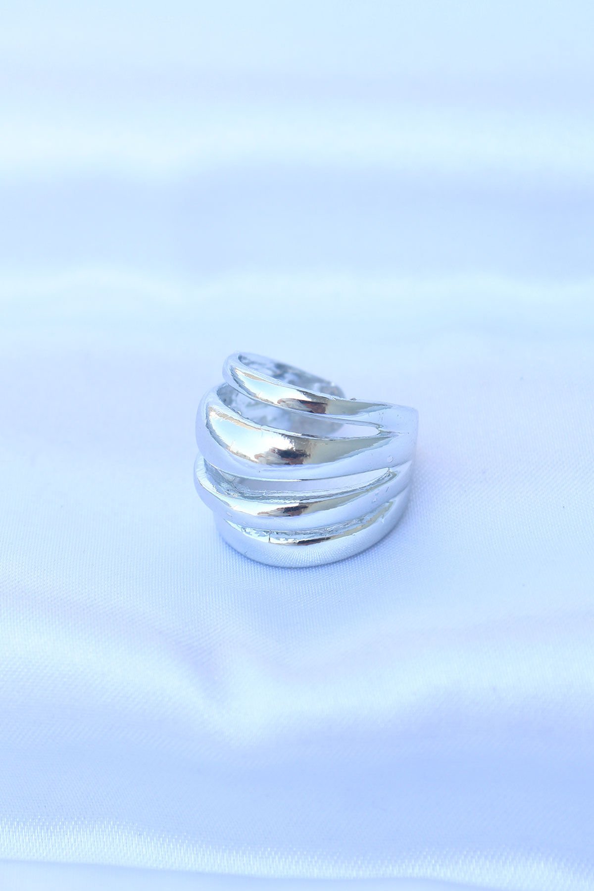 Pirinç Gümüş Renk Ayarlanabilir Tırtıklı Bombe Yüzük