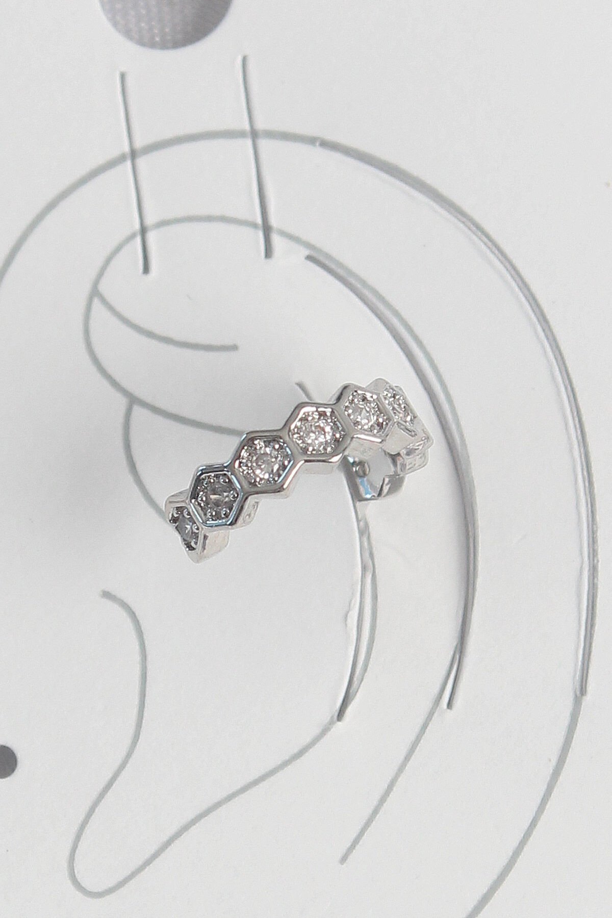 Pirinç Gümüş Renk Bal Peteği Model Zirkon Taşlı Kadın Kıkırdak Küpe