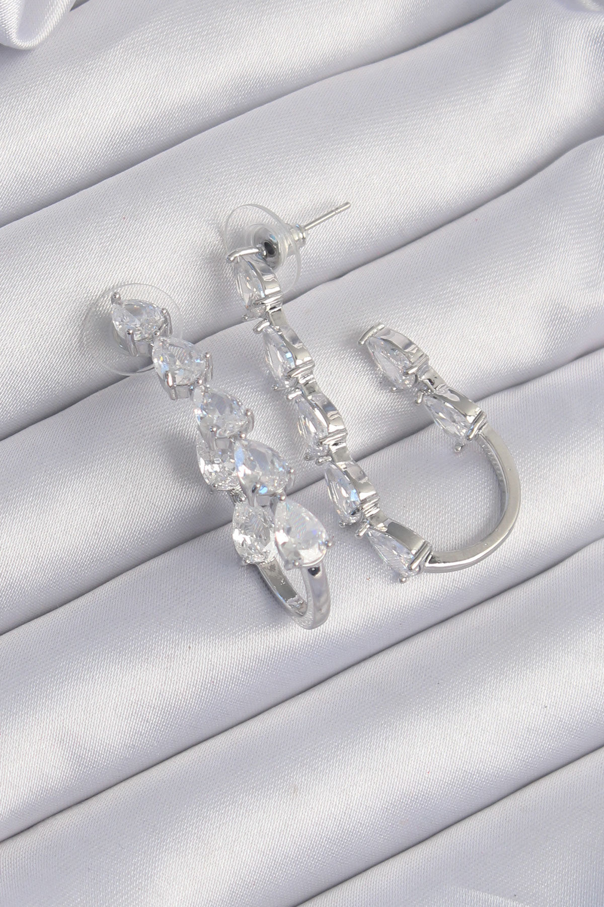 Pirinç Gümüş Renk Damla Zirkon Taş Tasarımlı Küpe e_BKP9197