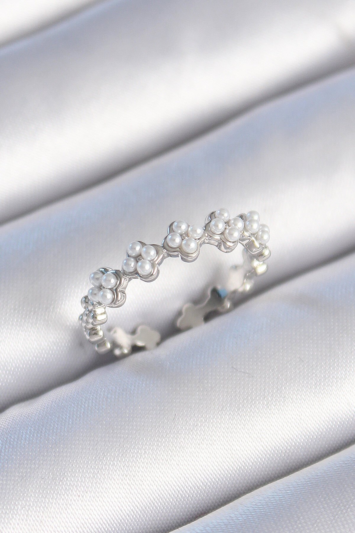 Pirinç Gümüş Renk İncili Yonca Model Kadın Yüzük e_BYK3457