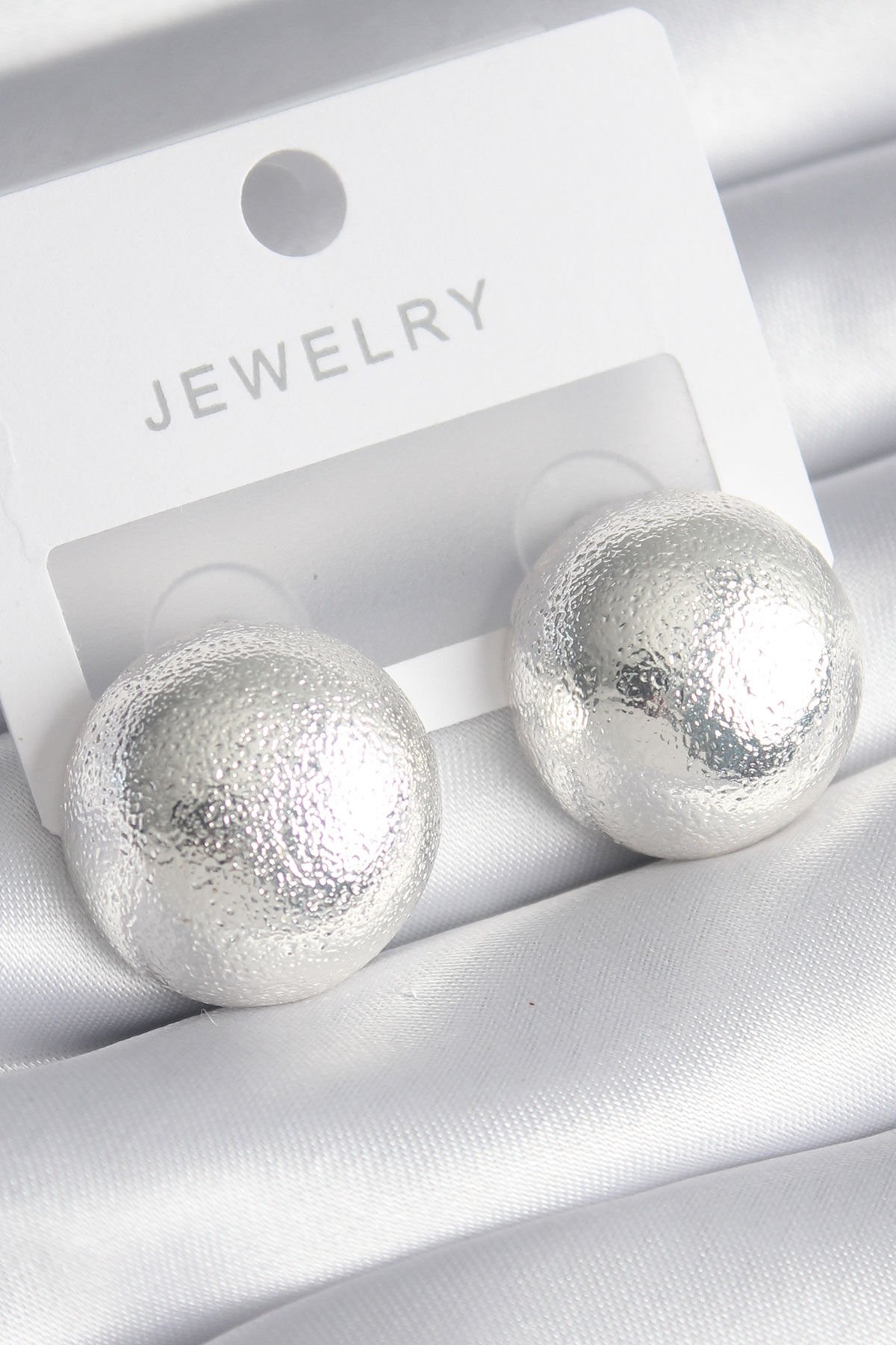 Pirinç Gümüş Renk İşleme Detay Top Model Kadın Küpe e_BKP8544