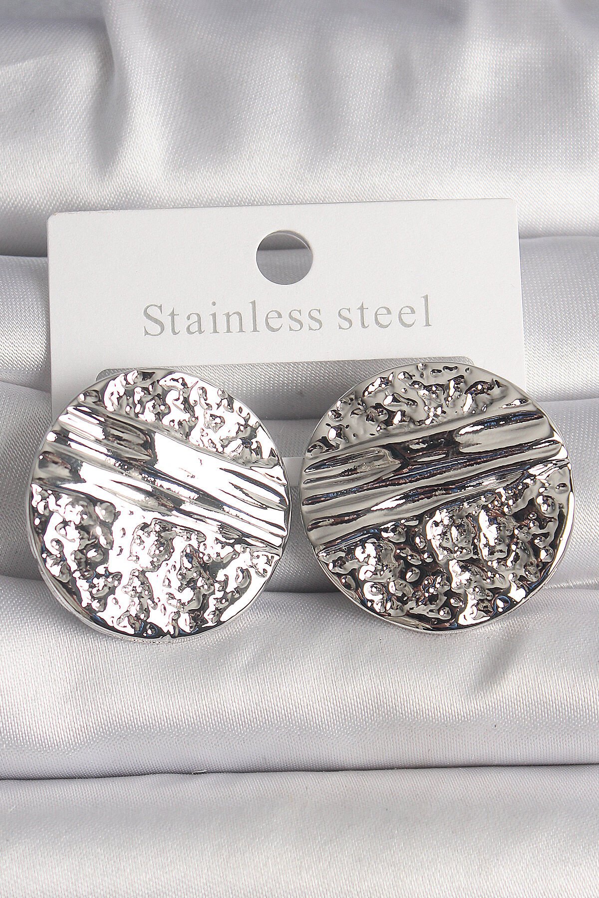 Pirinç Gümüş Renk İşlemeli Daire Plaka Model Kadın Küpe e_BKP10152