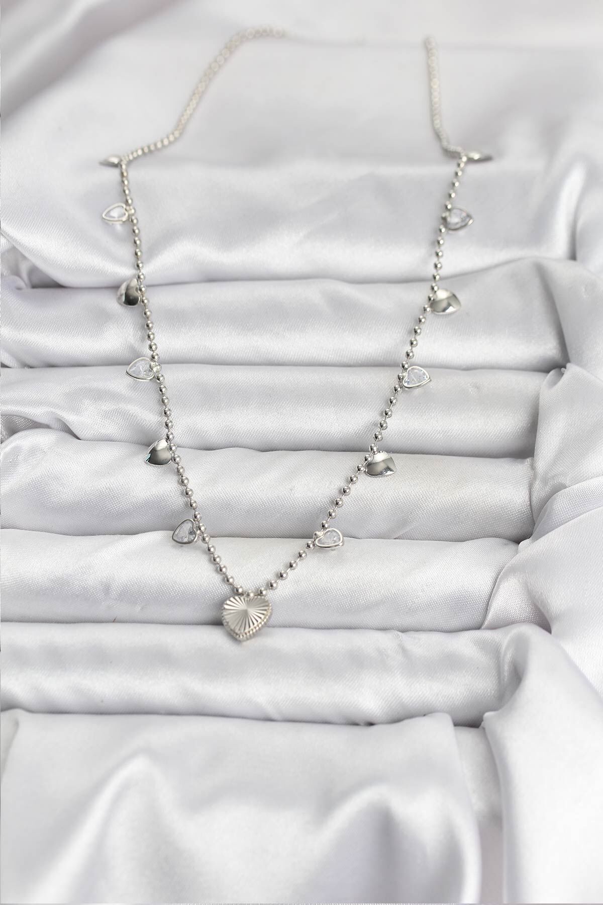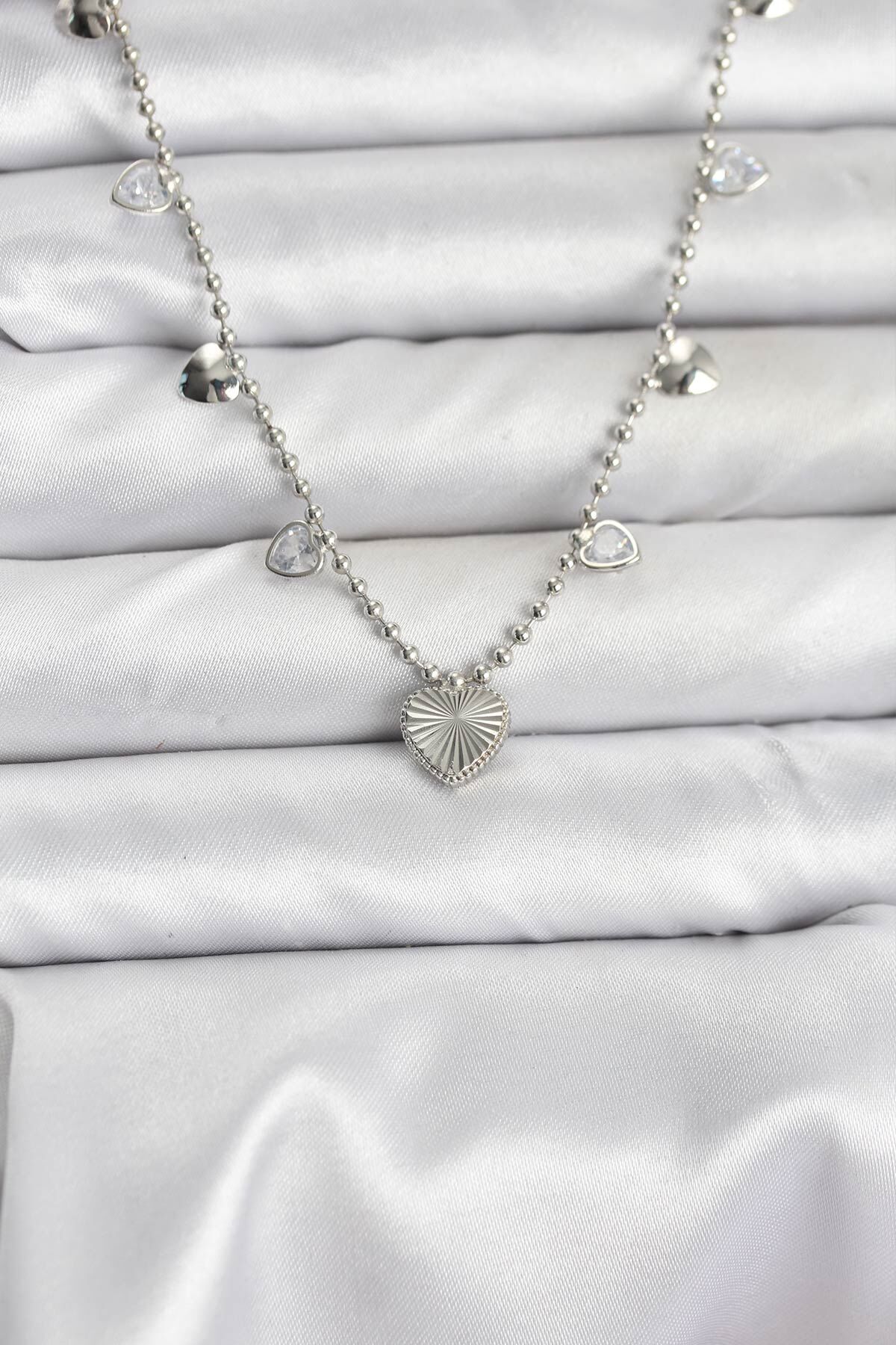 Pirinç Gümüş Renk Kalp Model Kadın Kolye
