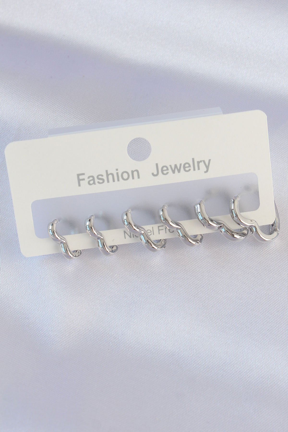 Pirinç Gümüş Renk Kalp Model Küpe Seti
