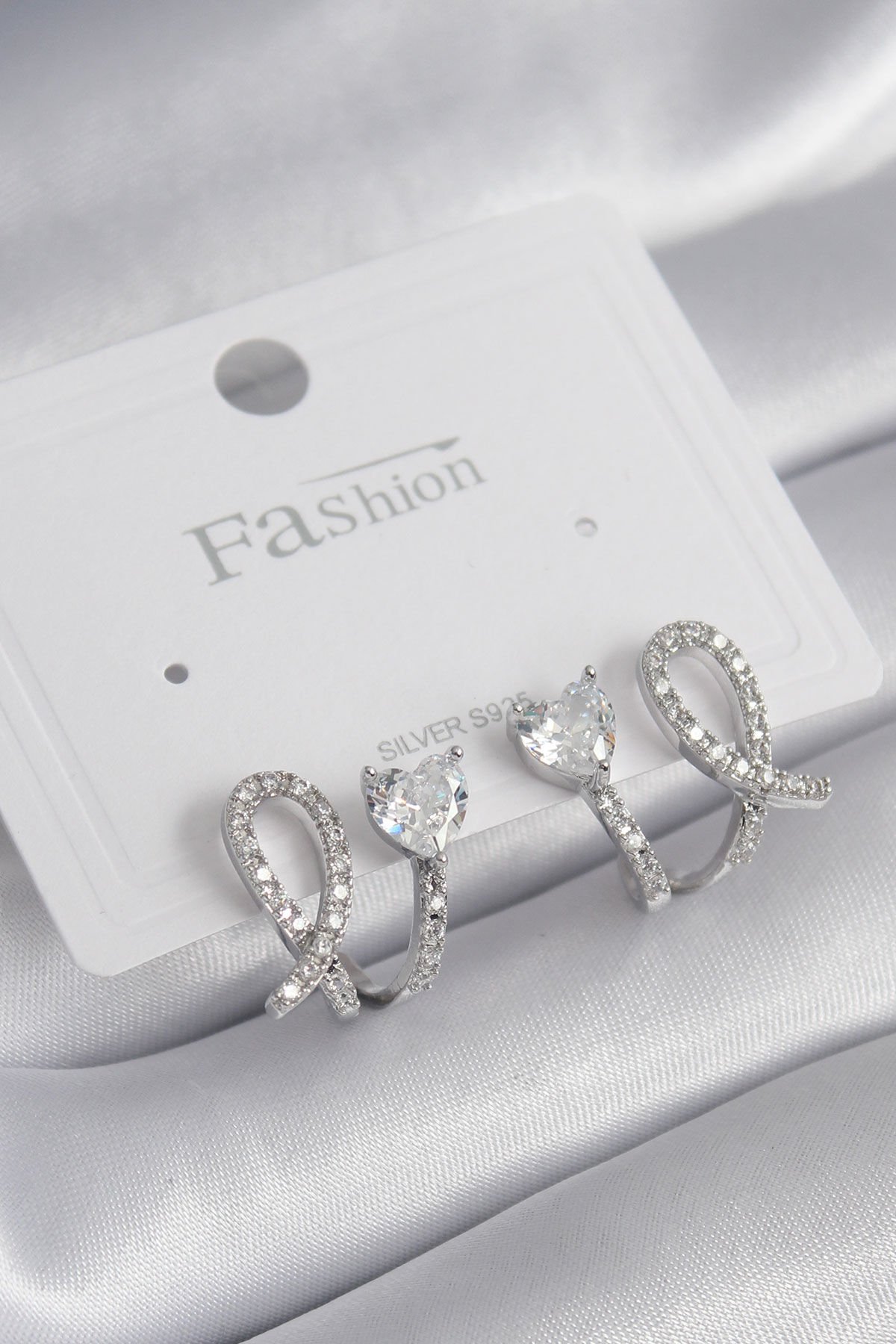 Pirinç Gümüş Renk Kalp Model Zirkon Taşlı Kadın Küpe e_BKP8441