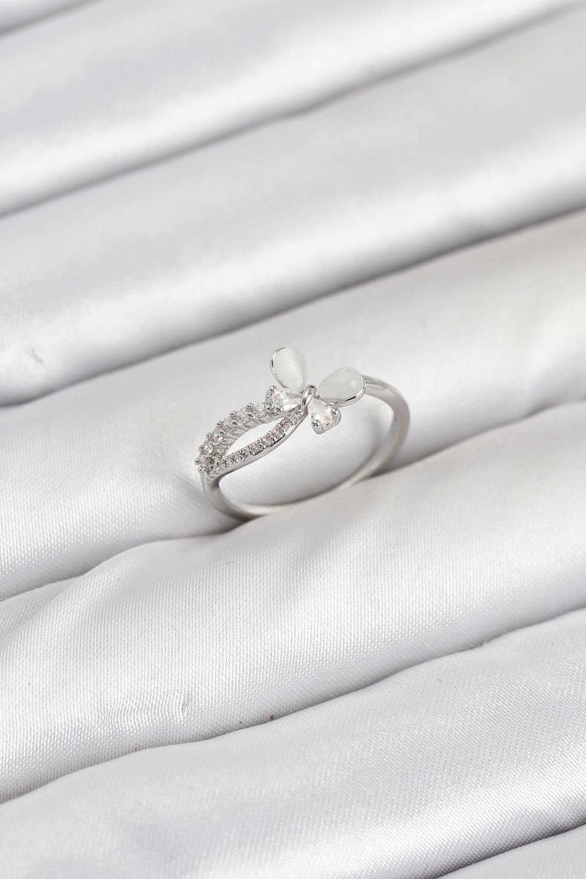 Pirinç Gümüş Renk Kelebek Zirkon Taşlı Kadın Yüzük