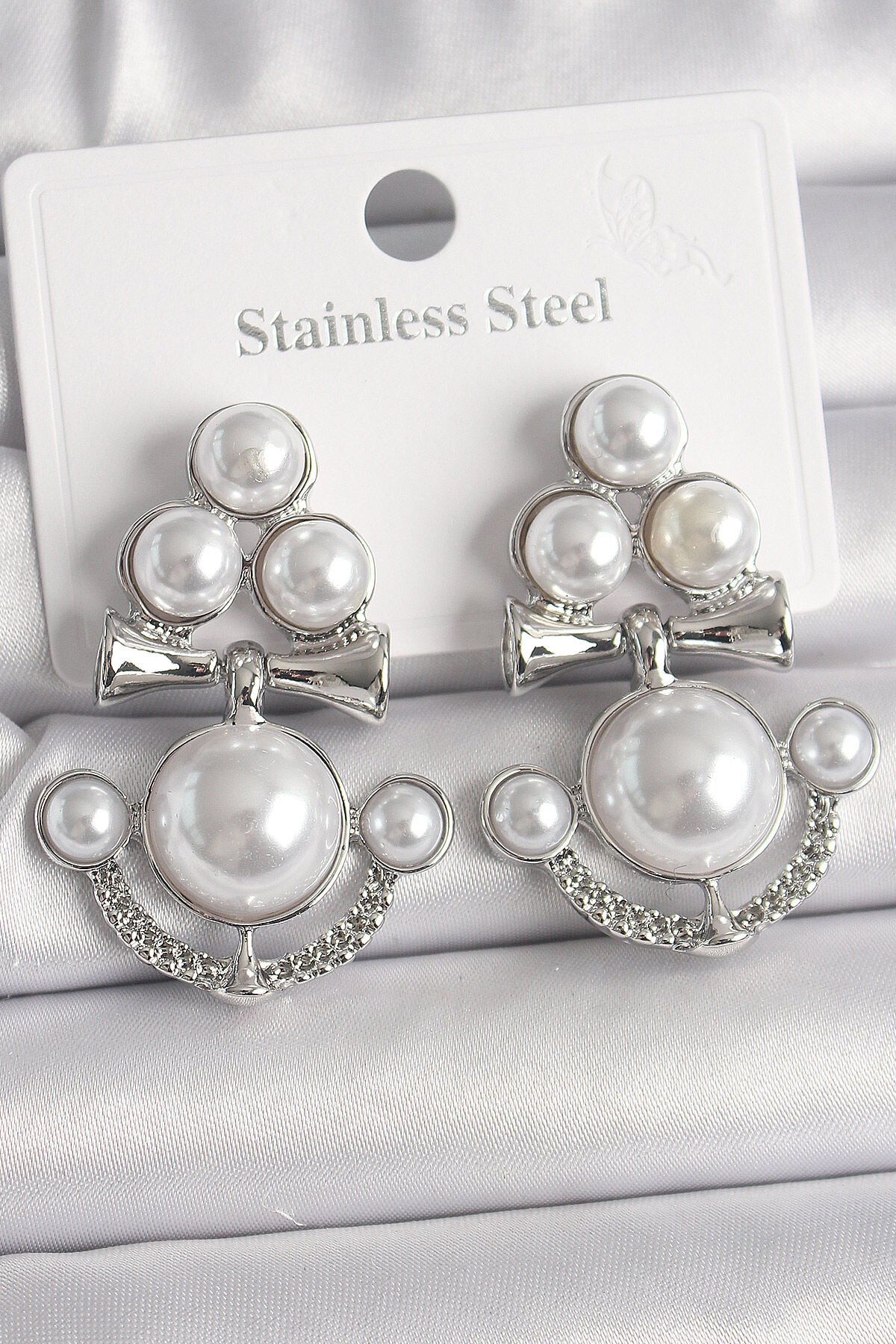 Pirinç Gümüş Renk Sallantı İncili Çapa Model Kadın Küpe e_BKP10086