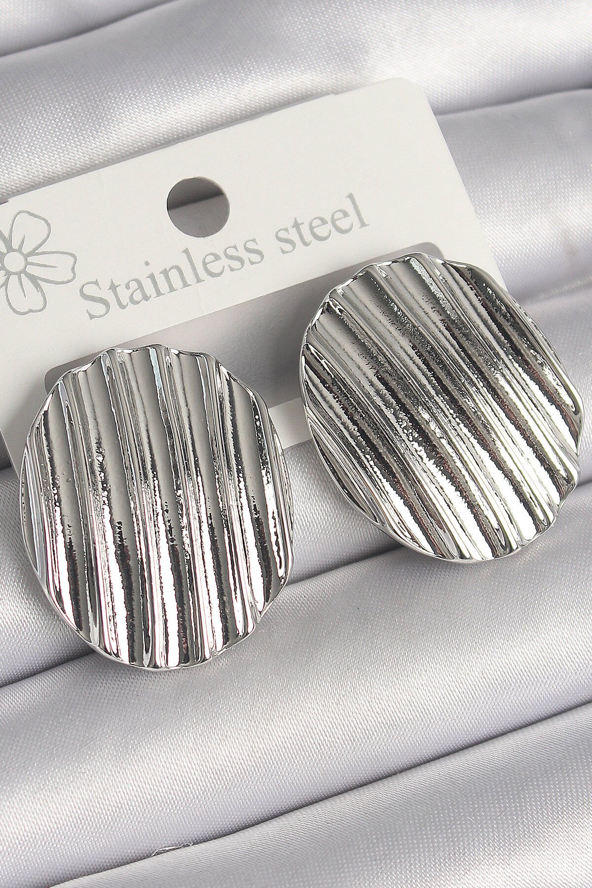 Pirinç Gümüş Renk Sallantı İşlemeli Daire Plaka Model Kadın Küpe e_BKP10229