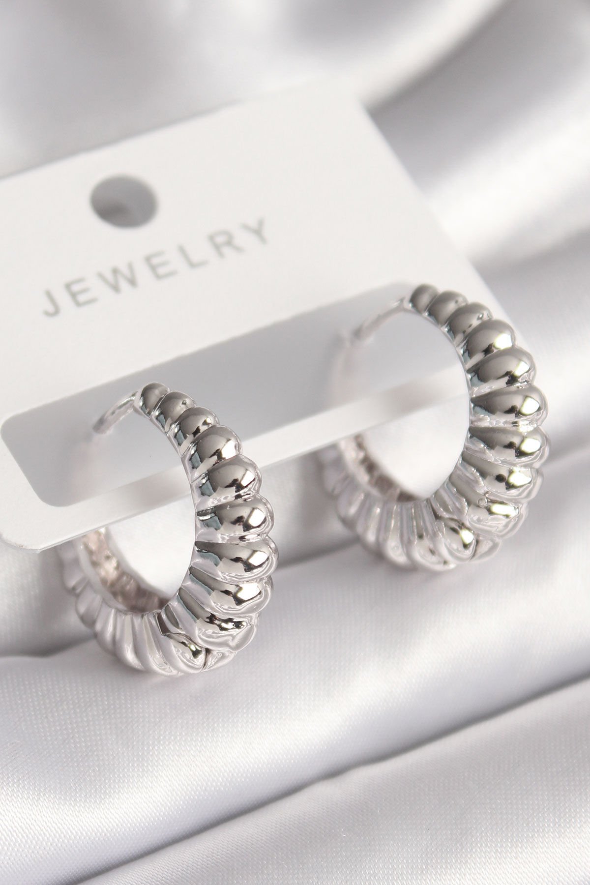 Pirinç Gümüş Renk Sarmal Halka Model Kadın Küpe e_BKP8680