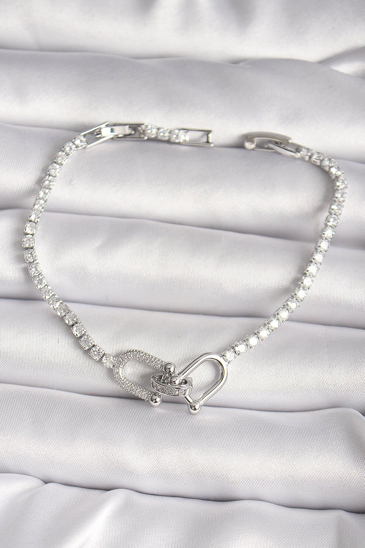 Pirinç Gümüş Renk Su Yolu Zirkon Taşlı Model Kadın Bileklik
