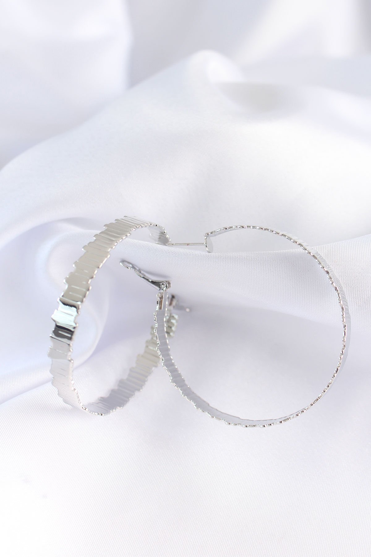 Pirinç Gümüş Renk Tırtıklı Halka Küpe e_BKP8925