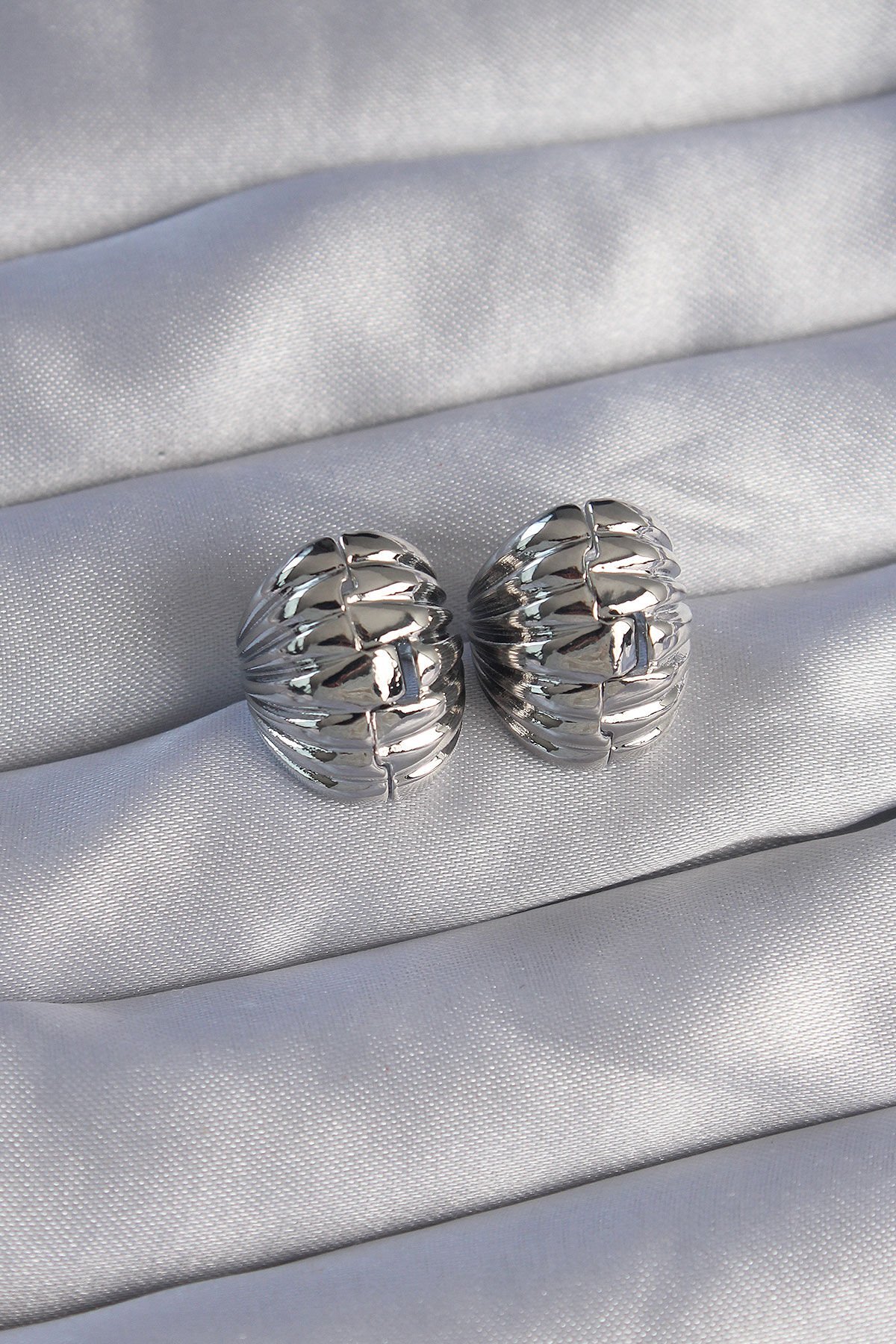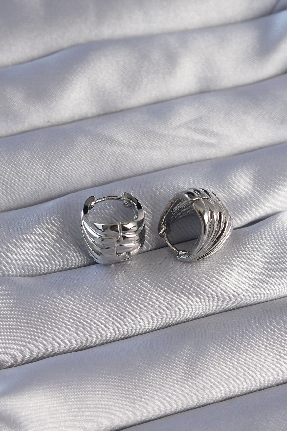 Pirinç Gümüş Renk Tırtıklı Minimal Bombeli Tasarım Küpe e_BKP9081