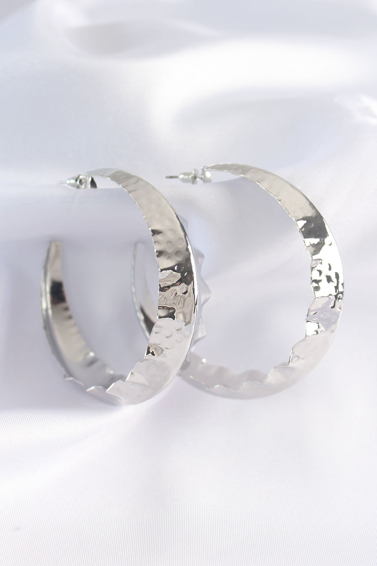 Pirinç Gümüş Renk Yaprak Desenli Halka Küpe e_BKP8922