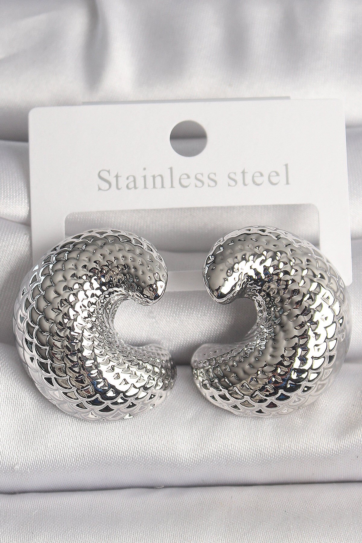 Pirinç Gümüş Renk Yılan Sırtı İşlemeli Yarım Halka Model Kadın Küpe