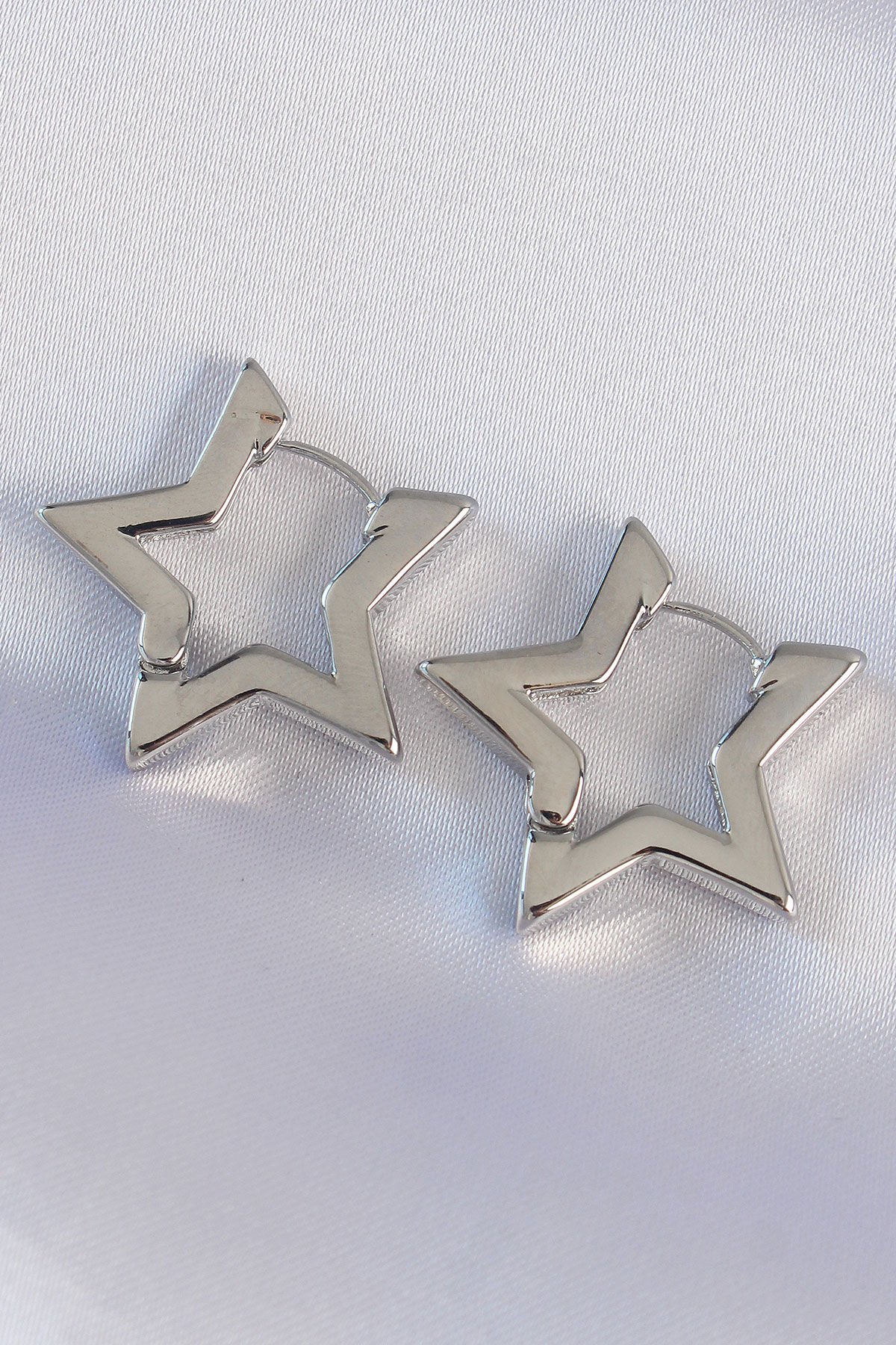 Pirinç Gümüş Renk Yıldız Küpe e_BKP8983