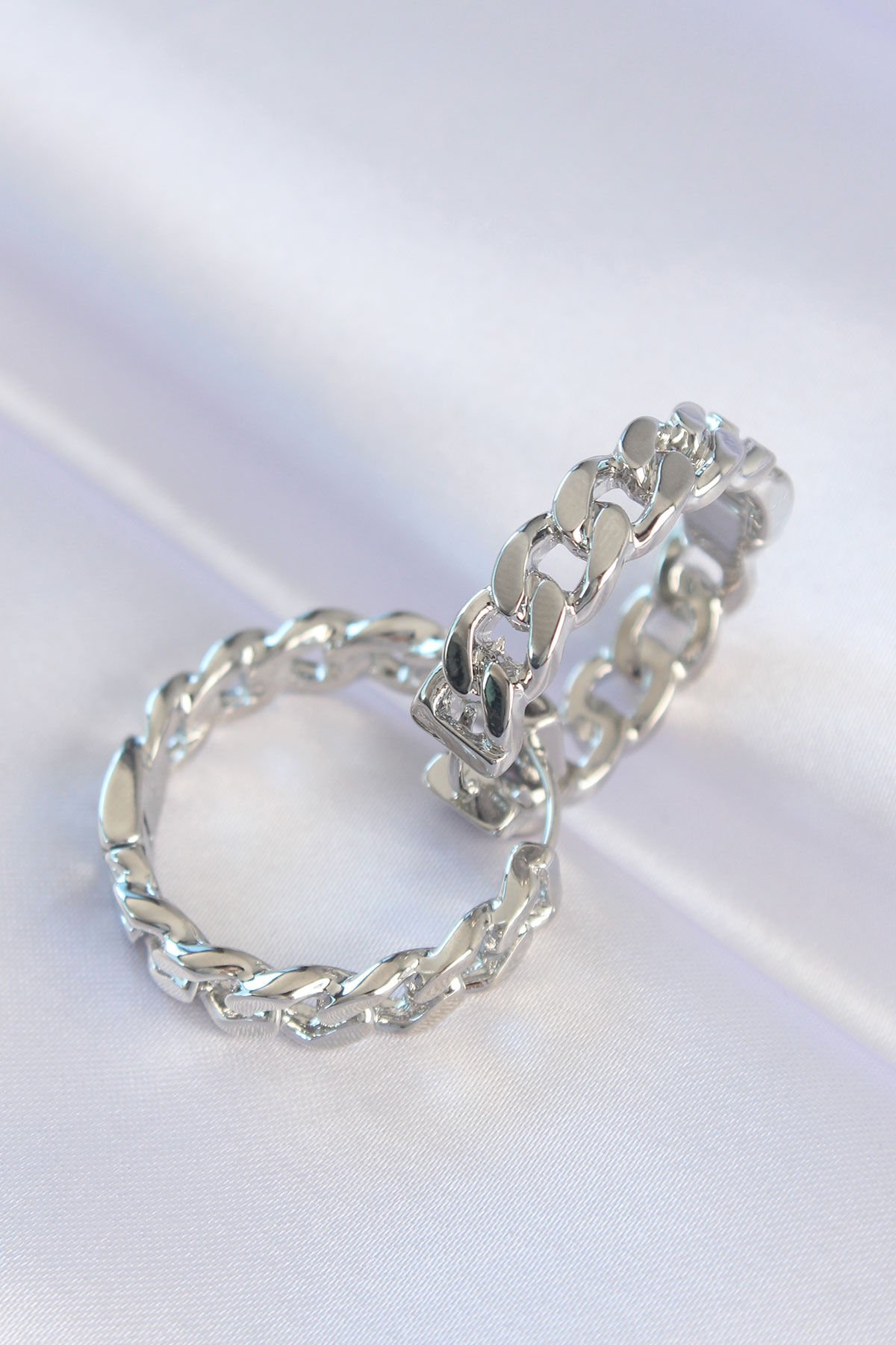 Pirinç Gümüş Renk Zincir Model Halka Küpe