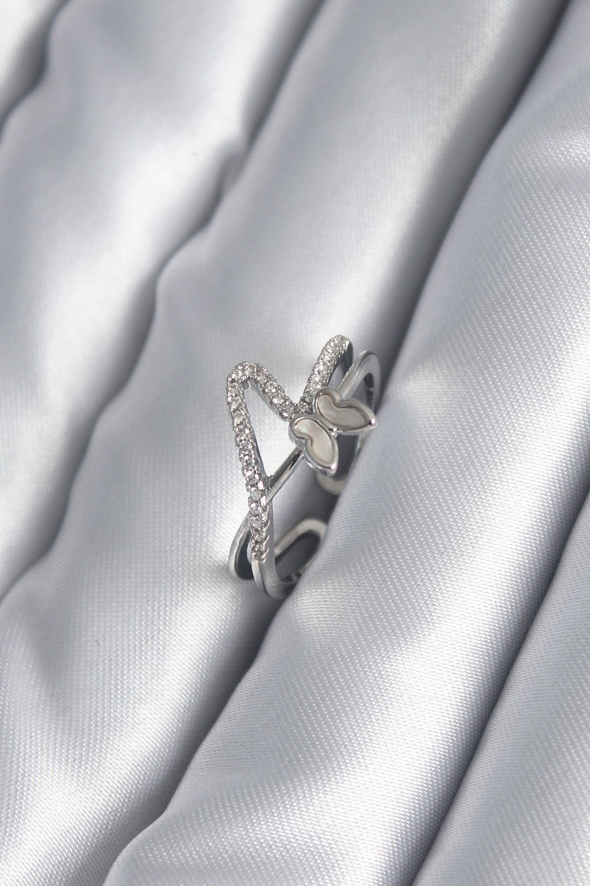 Pirinç Gümüş Renk Zirkon Taş Detay Kelebek Model Kadın Yüzük