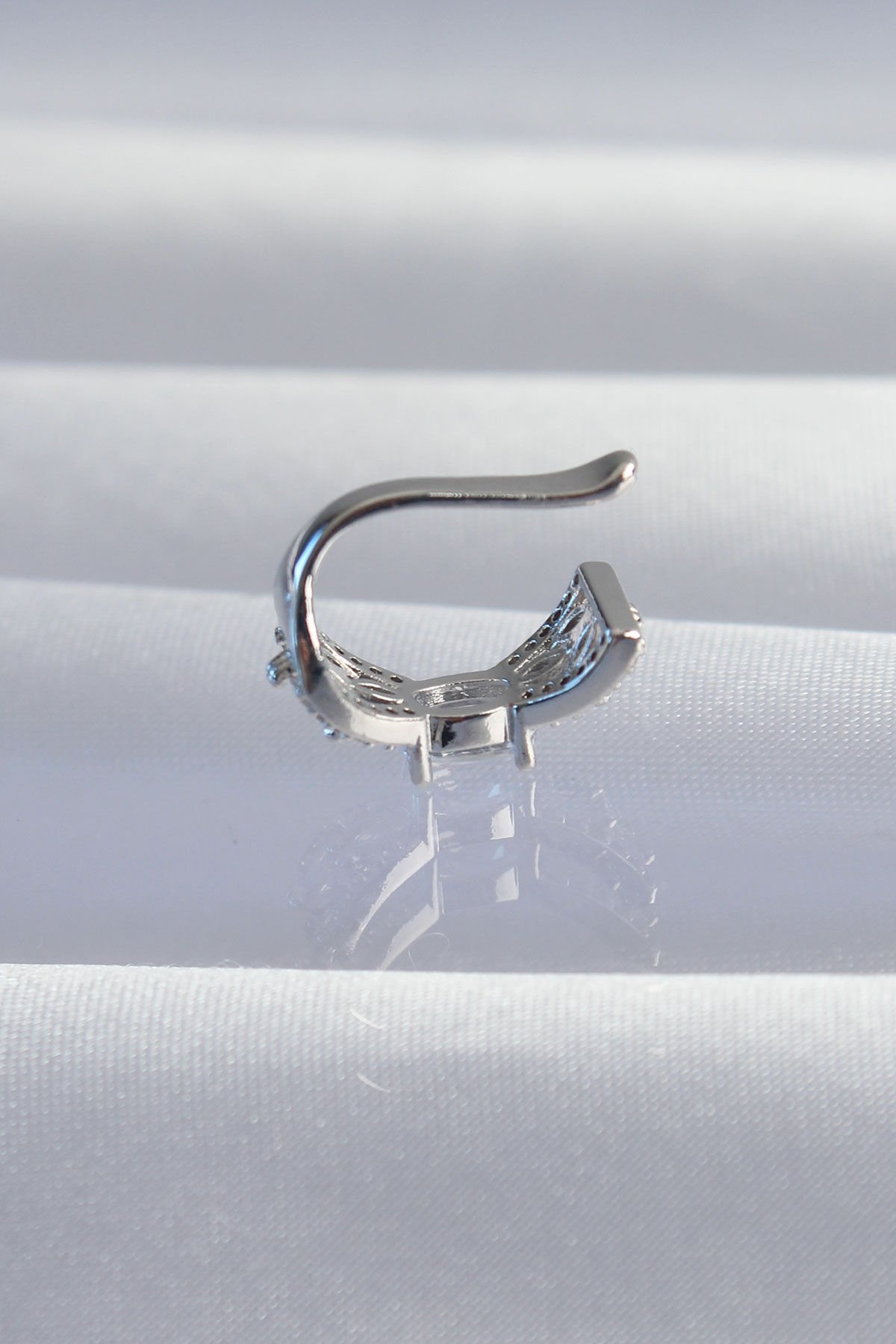 Pirinç Gümüş Renk Zirkon Taş Kaplama Earcuff Küpe