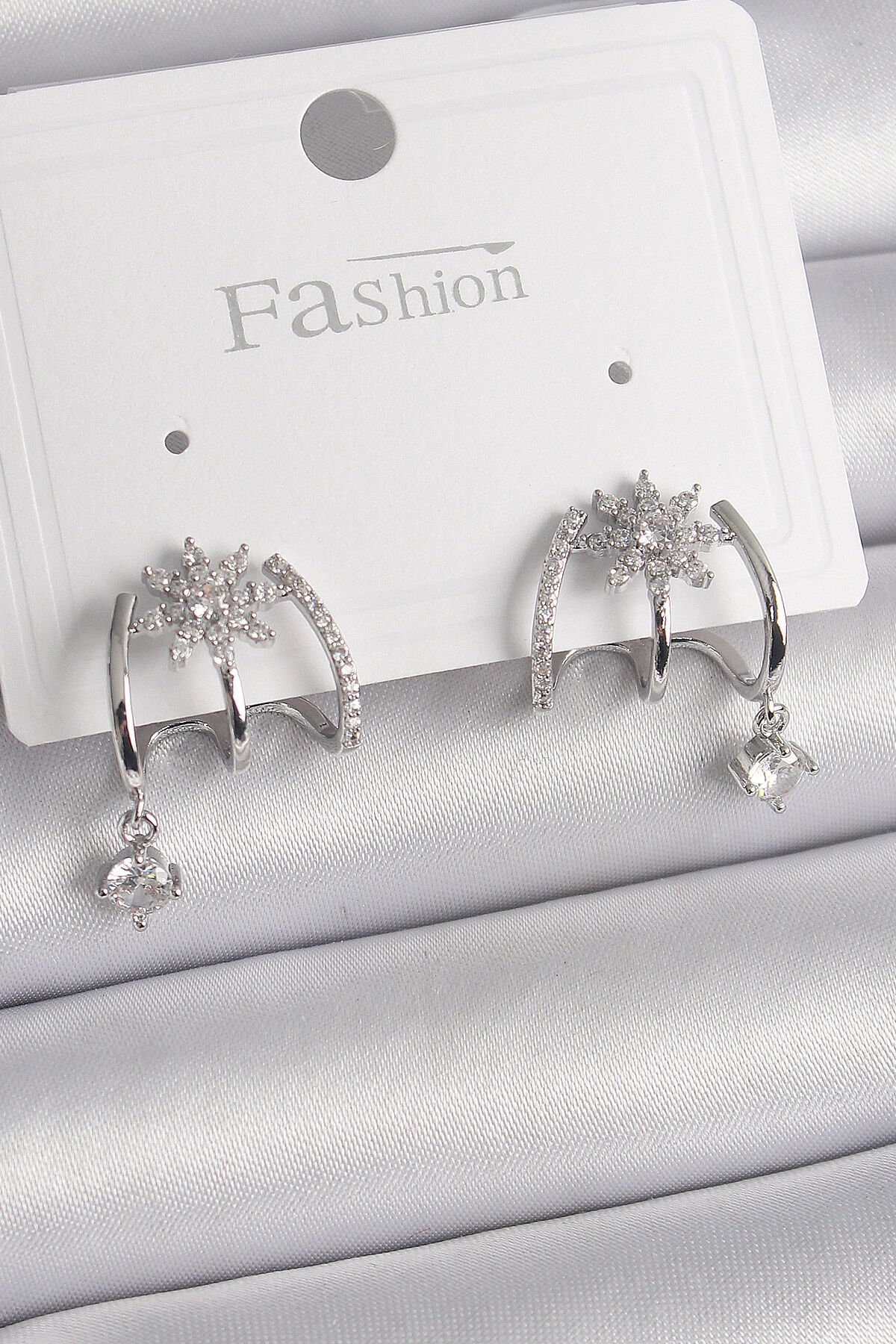 Pirinç Gümüş Renk Zirkon Taşlı Çiçek Figür Sallantı Detay Kadın Küpe