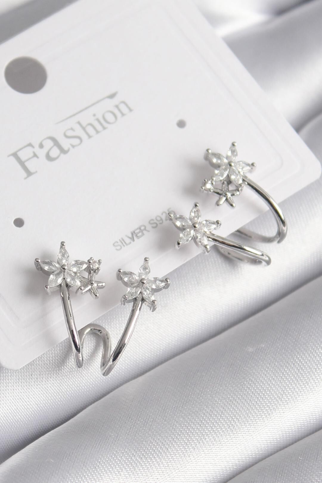 Pirinç Gümüş Renk Zirkon Taşlı Çiçek Model Kadın Küpe e_BKP9746