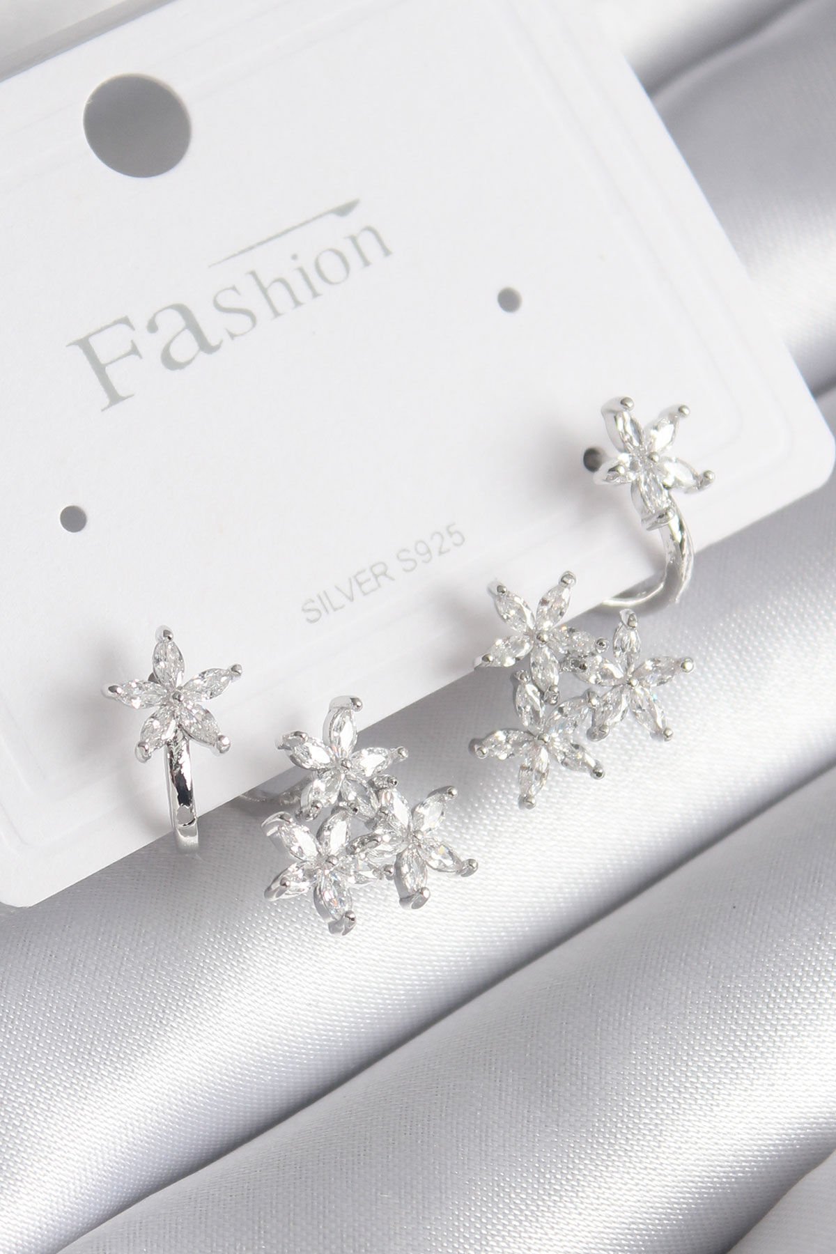 Pirinç Gümüş Renk Zirkon Taşlı Çiçek Tasarım Kadın Küpe e_BKP8606