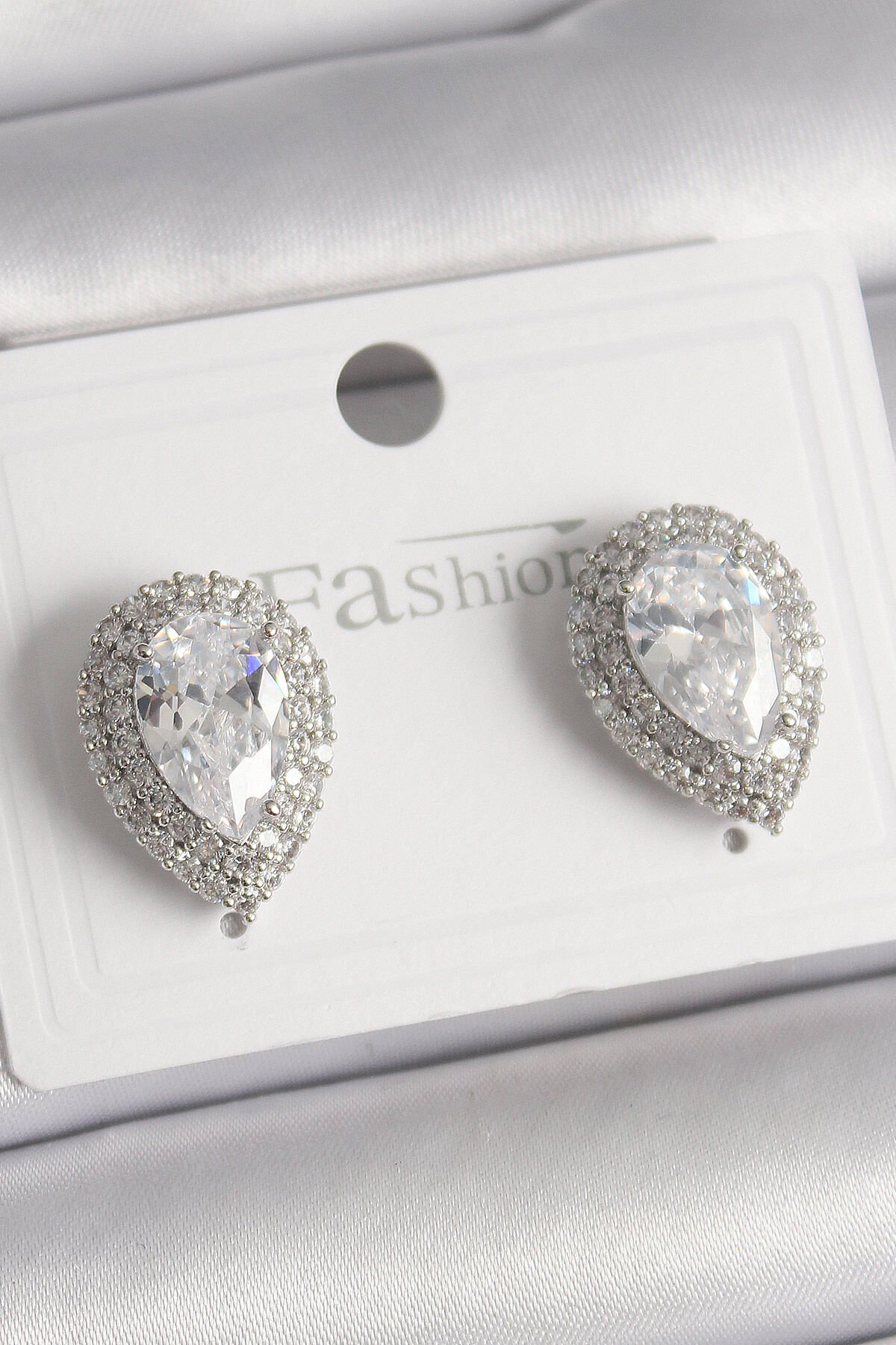 Pirinç Gümüş Renk Zirkon Taşlı Damla Model Kadın Küpe e_BKP9918