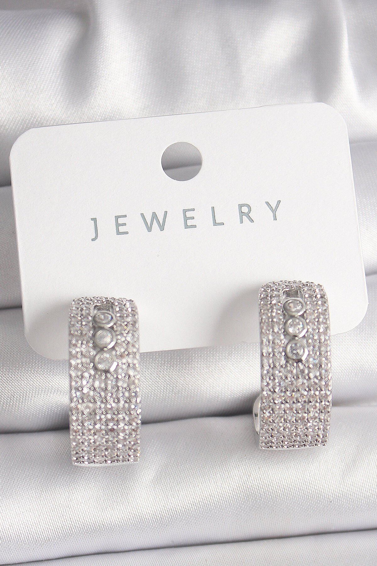 Pirinç Gümüş Renk Zirkon Taşlı Halka Messika Model Kadın Küpe e_BKP10018