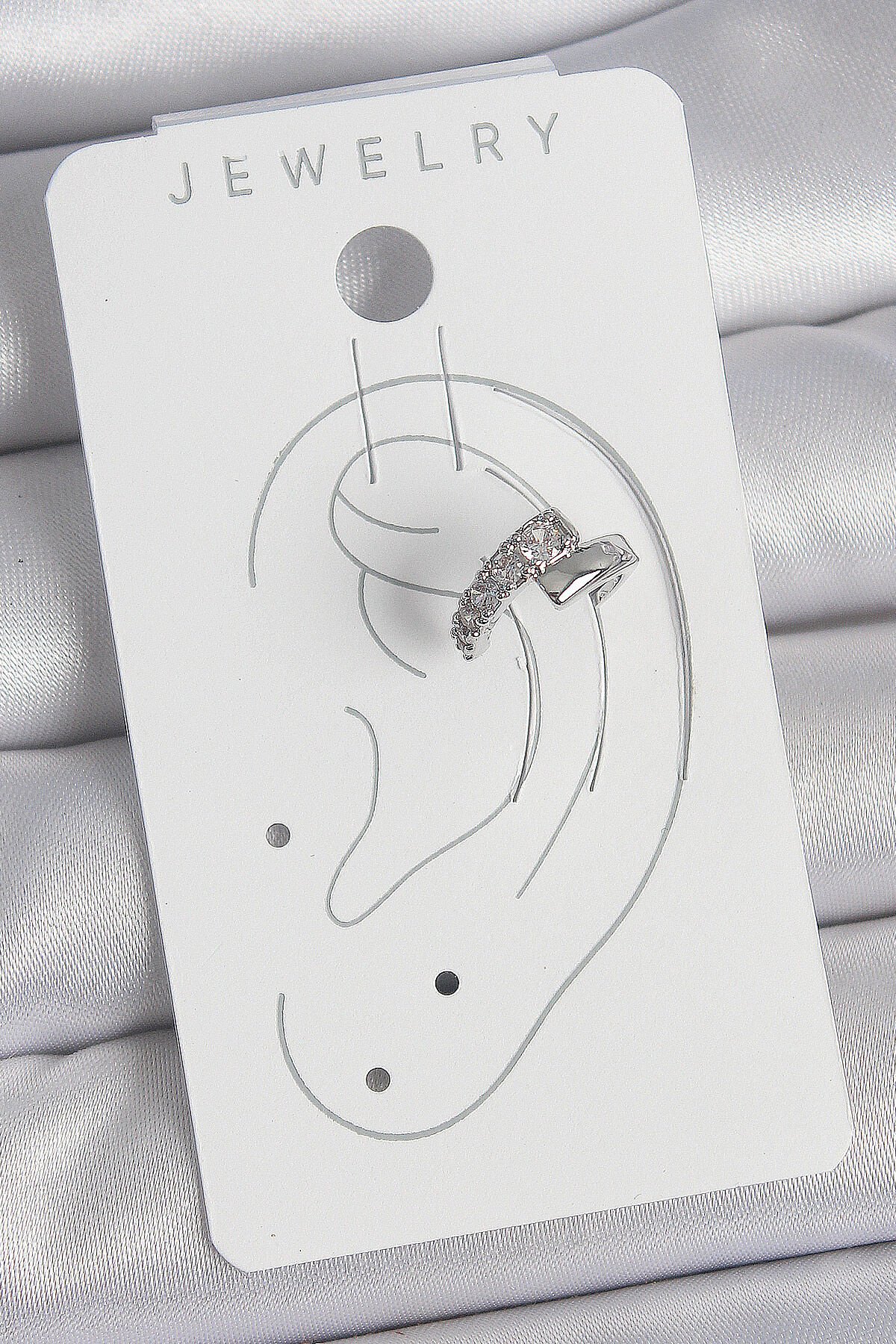 Pirinç Gümüş Renk Zirkon Taşlı Kadın Kıkırdak Küpe e_BKP10556