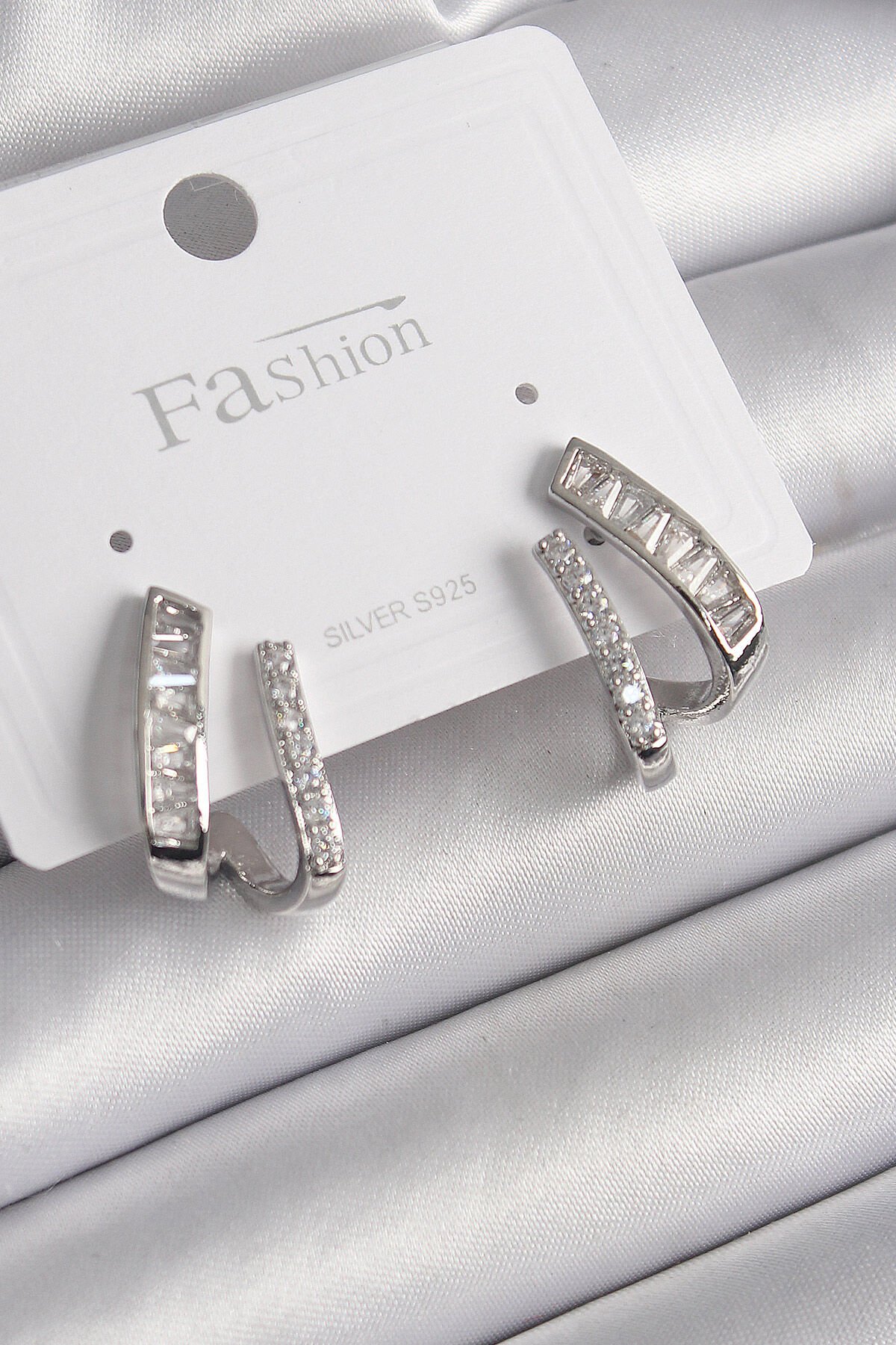 Pirinç Gümüş Renk Zirkon Taşlı Kadın Küpe