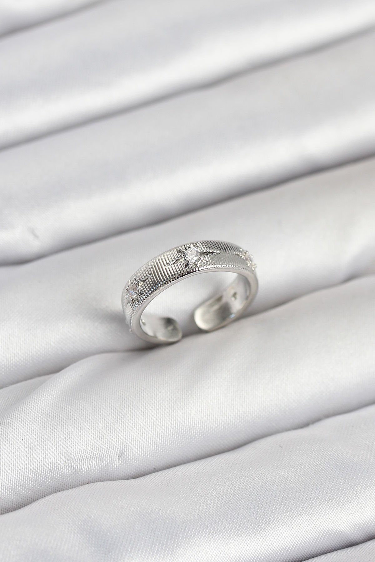 Pirinç Gümüş Renk Zirkon Taşlı Kutup Yıldızı Model Kadın Yüzük e_BYK3899