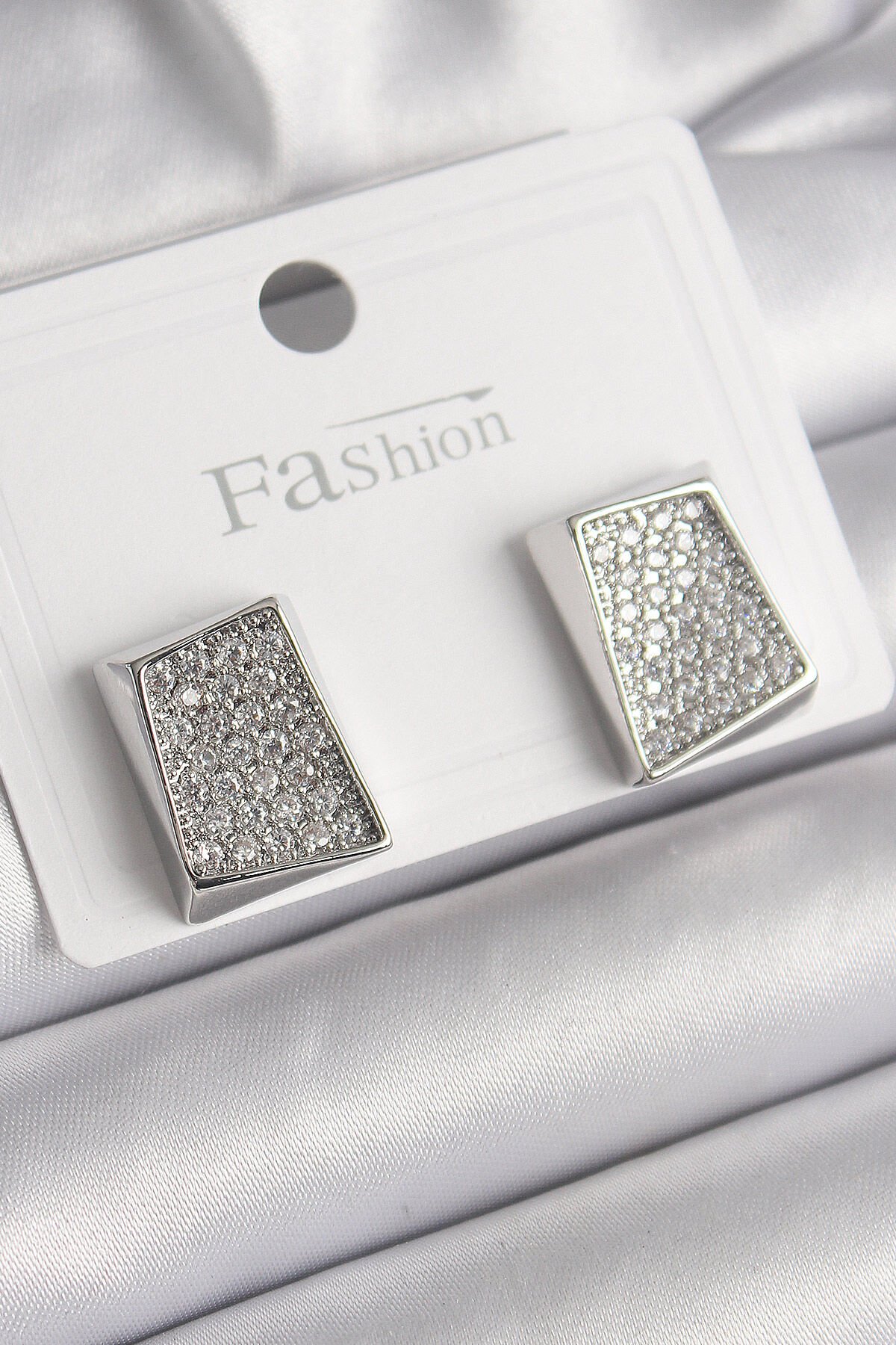 Pirinç Gümüş Renk Zirkon Taşlı Plaka Model Kadın Küpe e_BKP9849