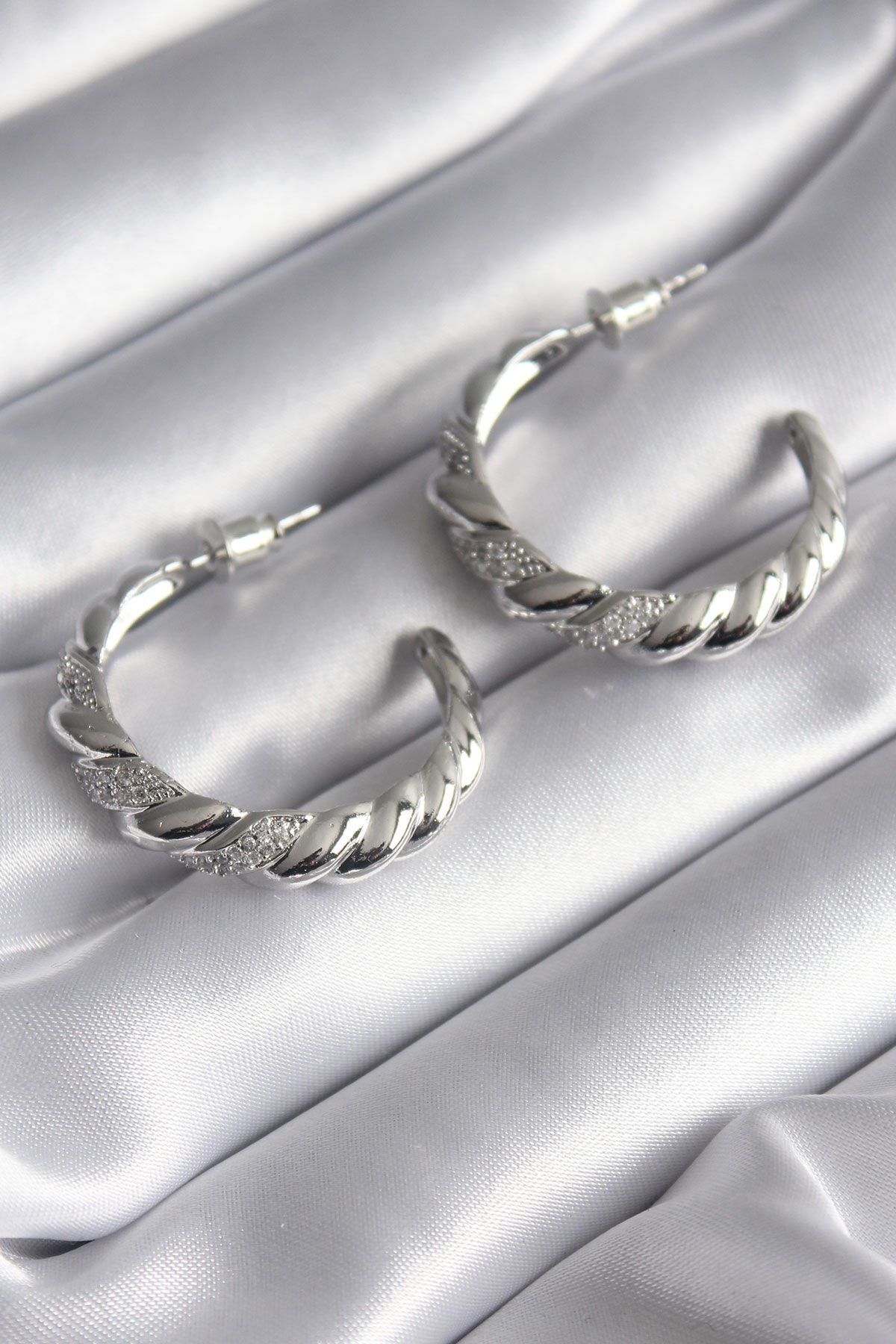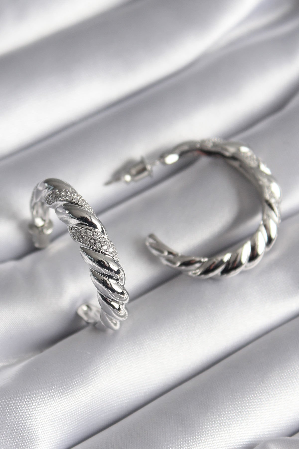 Pirinç Gümüş Renk Zirkon Taşlı Sarmal Model Kadın Küpe