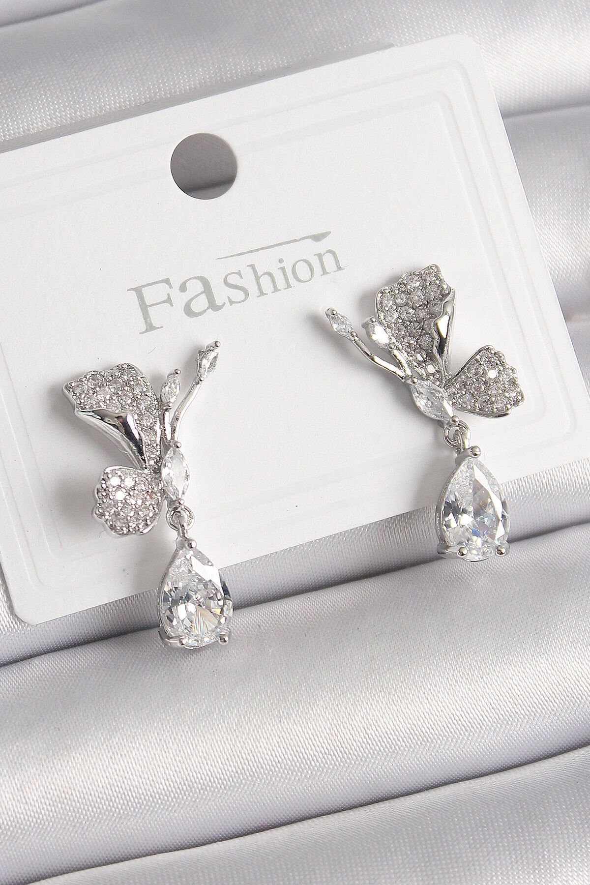 Pirinç Gümüş Renk Zirkon Taşlı Turna Kuşu Model Sallantı Detay Kadın Küpe