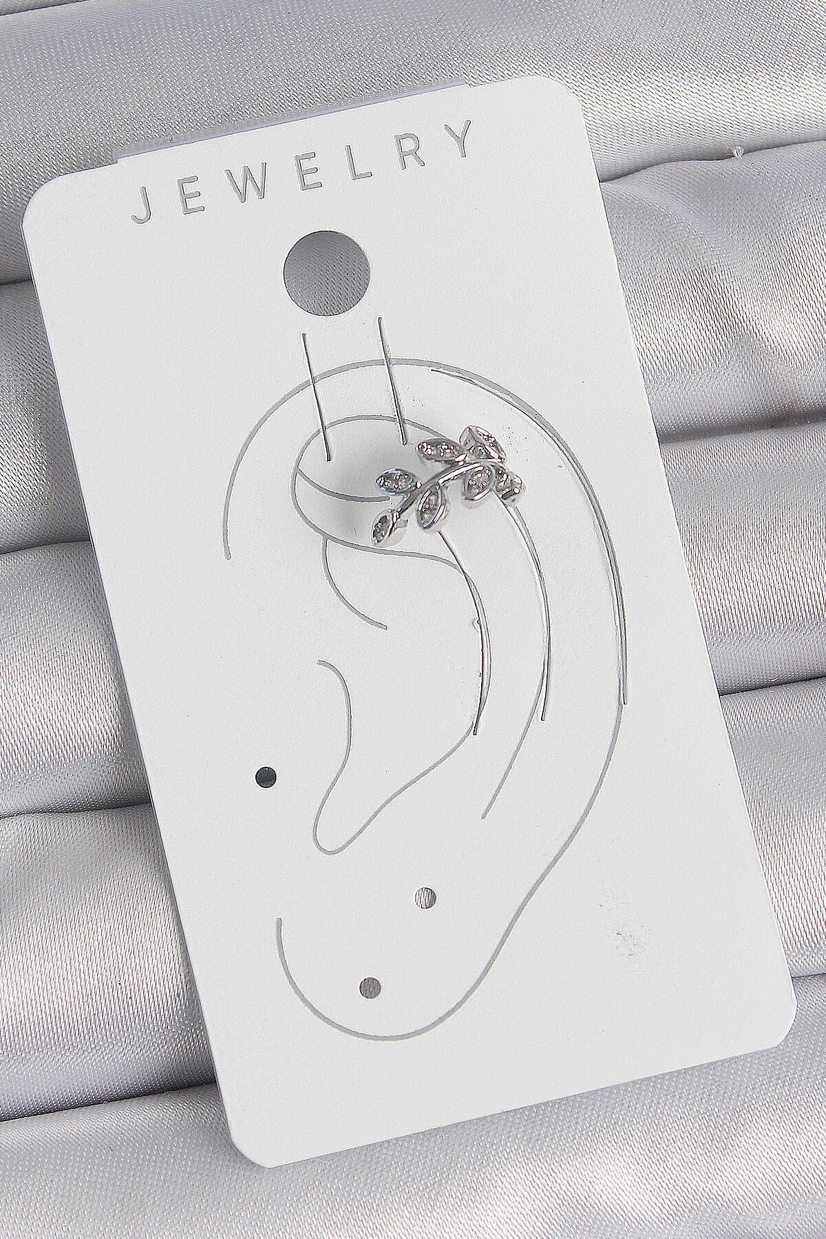 Pirinç Gümüş Renk Zirkon Taşlı Yaprak Model Kıkırdak Kadın Küpe