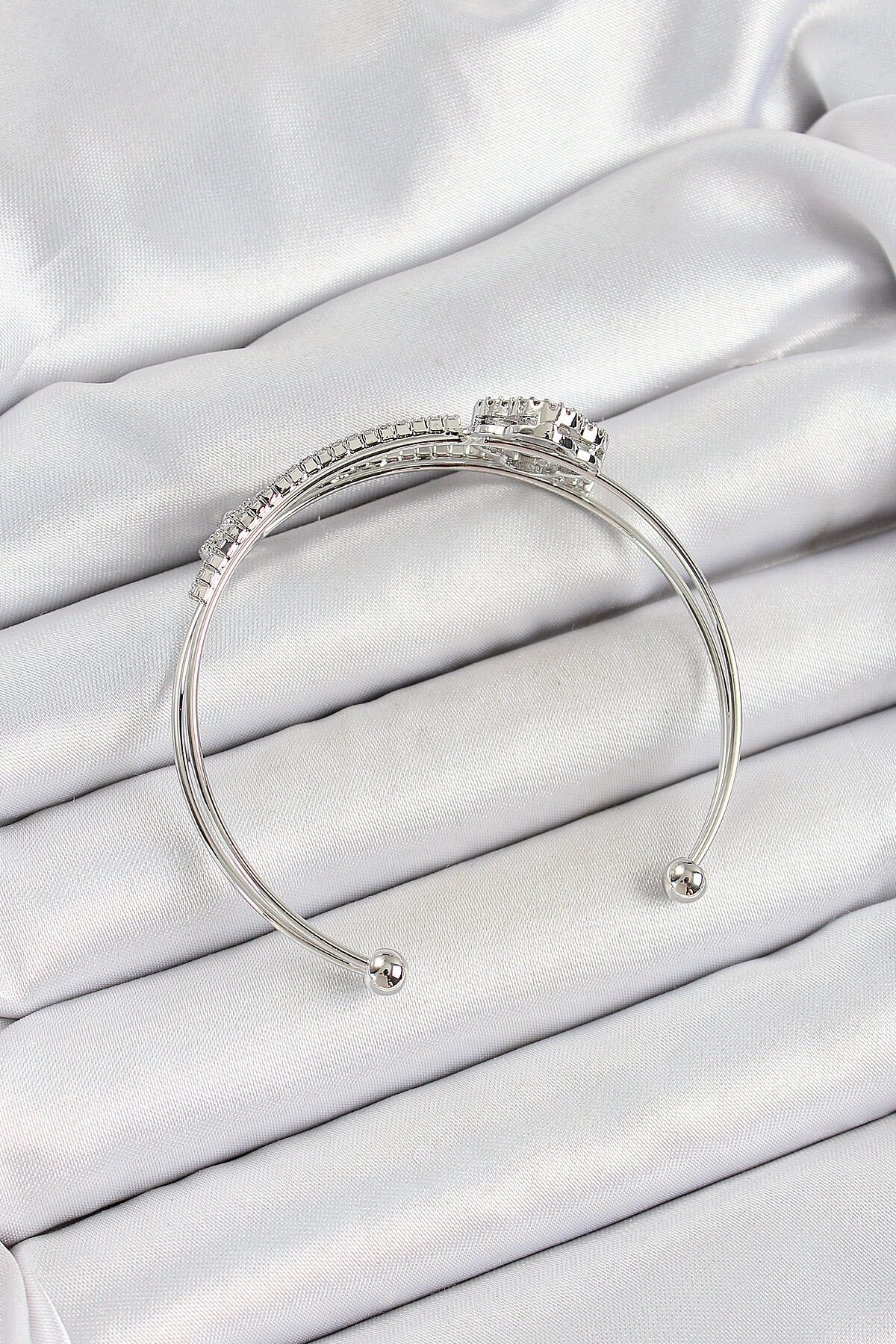 Pirinç Gümüş Renk Zirkon Taşlı Yonca Model 2'li Kadın Bileklik e_BB7063