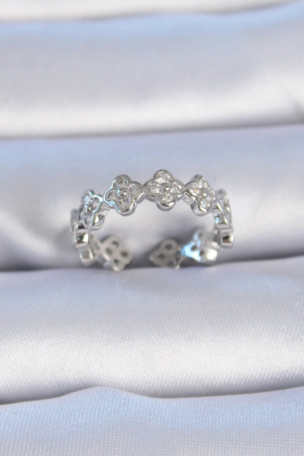 Pirinç Gümüş Renk Zirkon Taşlı Yonca Model Kadın Yüzük